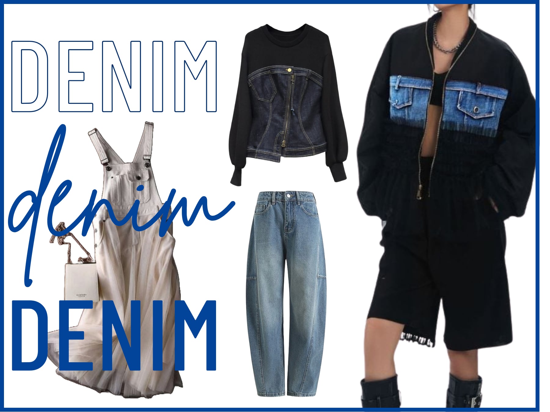 Denim tulle docking blouson 3 colors V1786