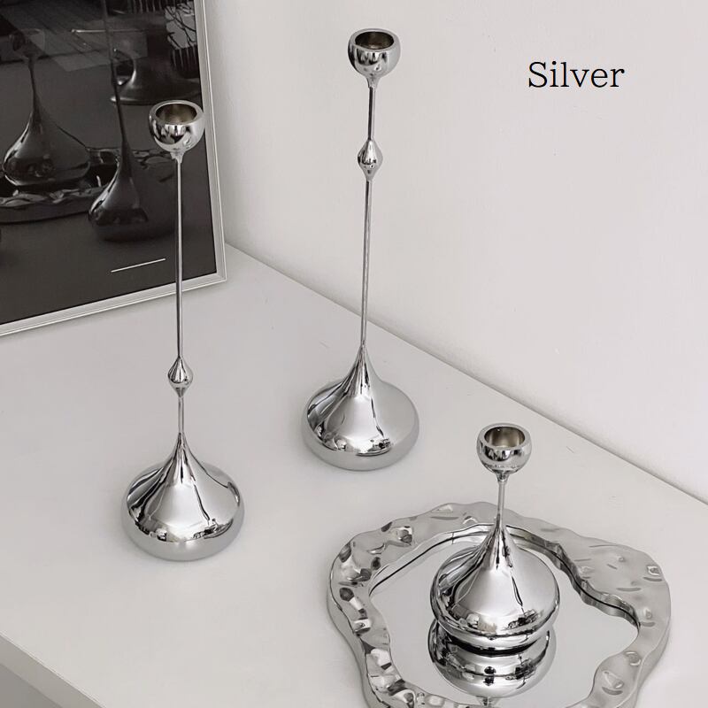 洗練された空間を演出する、3つの雫型キャンドルホルダーセット。