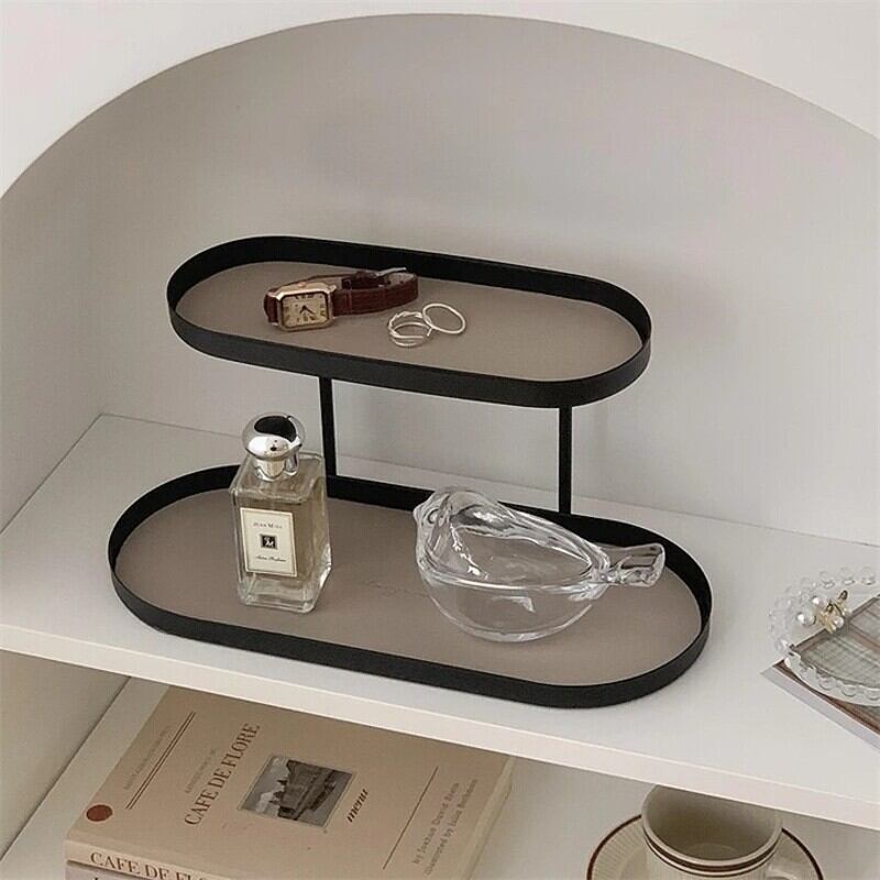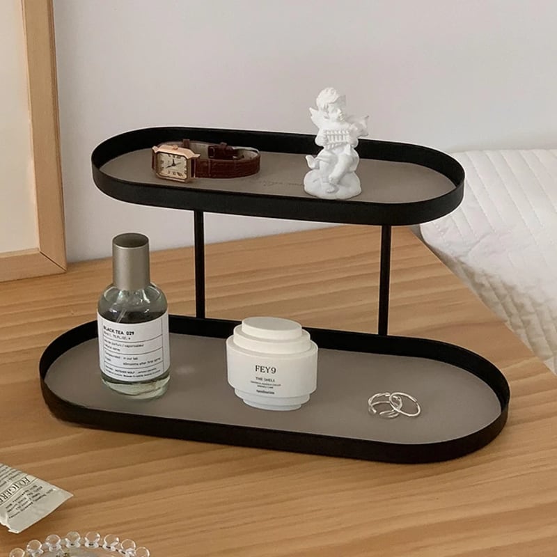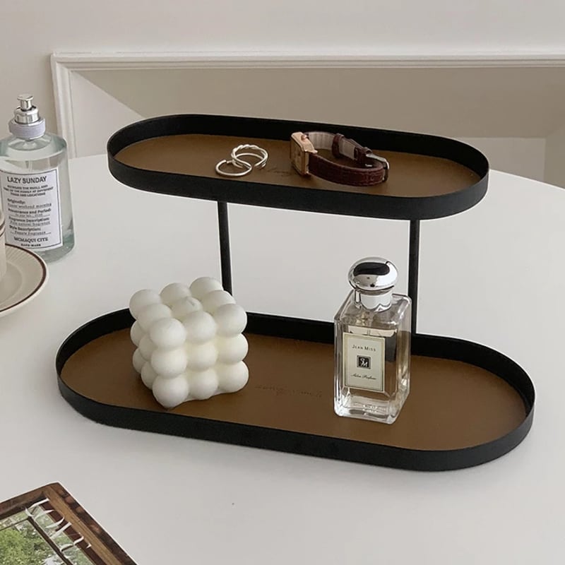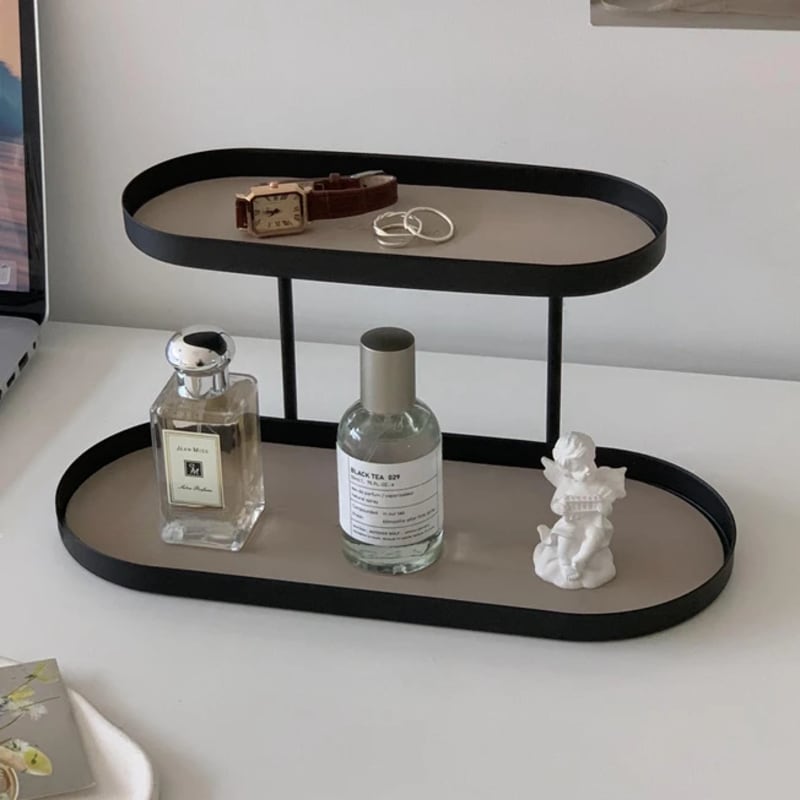 小物を美しくディスプレイできる2段式のトレイ。