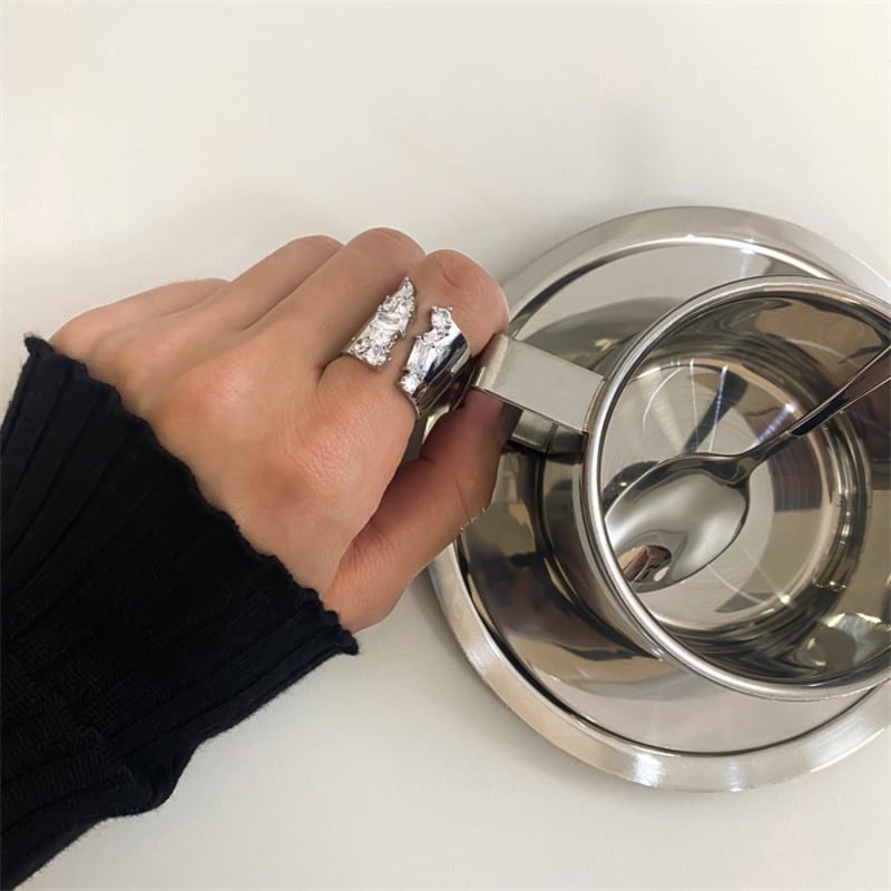 個性的ながらも、どんなスタイルにも馴染むリング。
