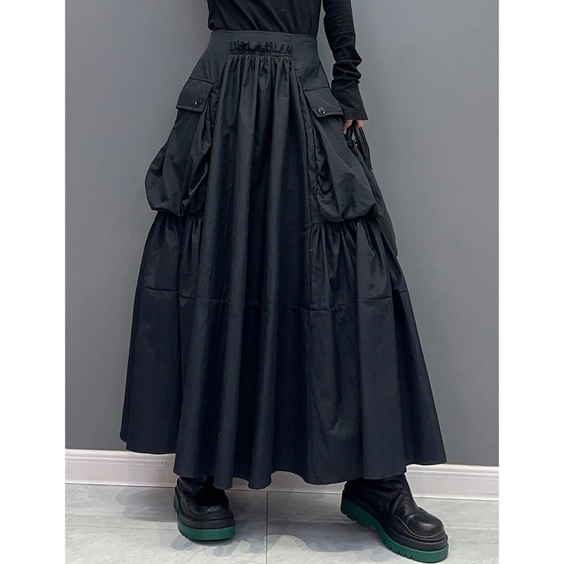 Big pocket gatherd long skirt 2 colors V2151