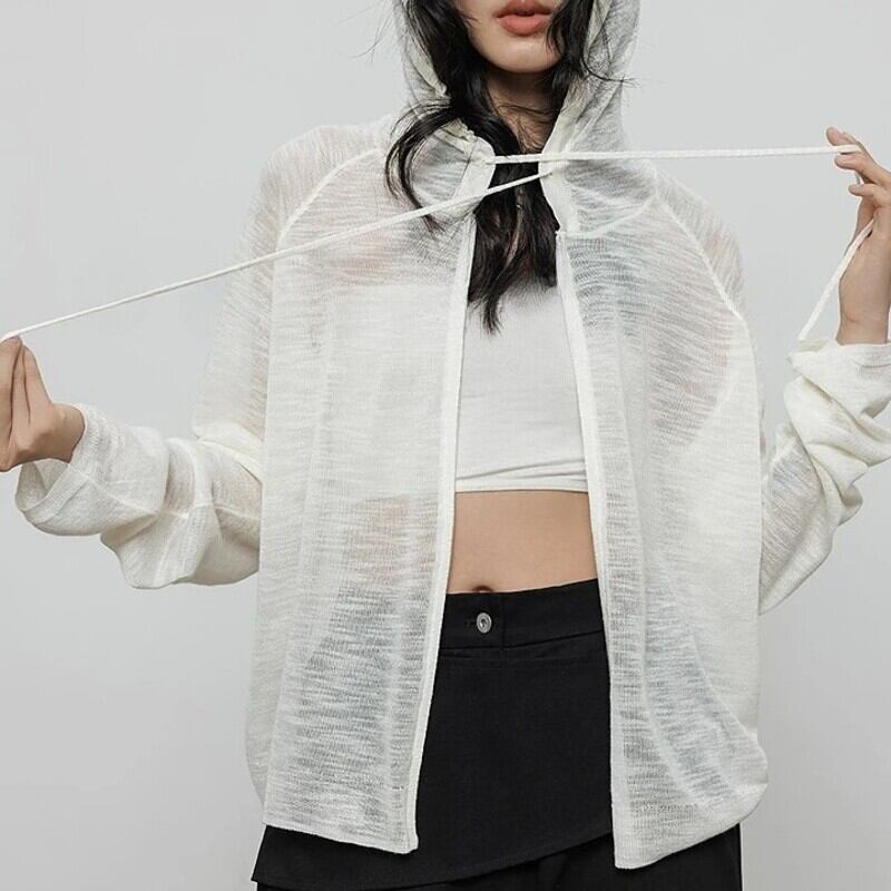 Loose sheer zip hoodie 4 colors V2333