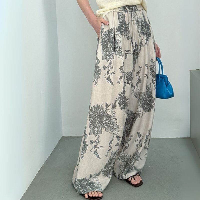 Chinoiserie floral wide pants 2 colors V2358