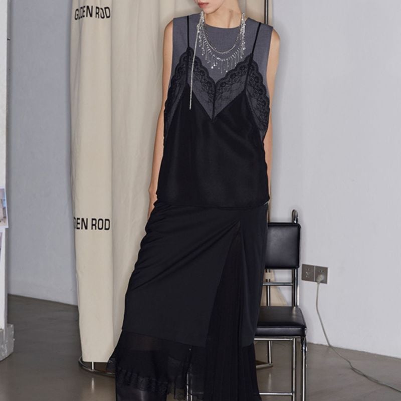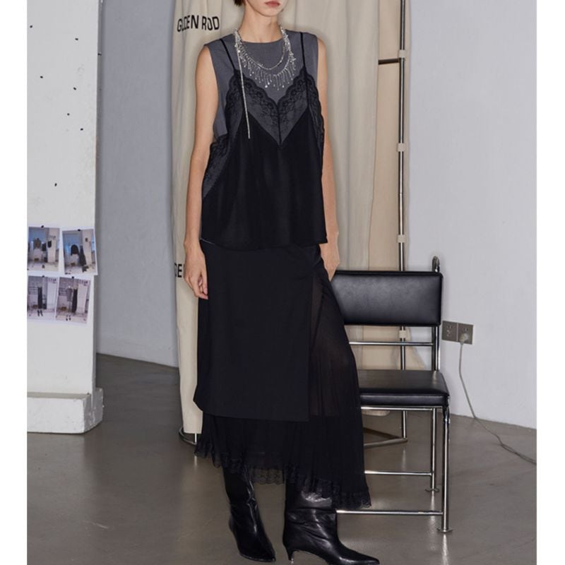 メタリックシルバーのキラキラとした素材感がトレンドライクなノースリーブニット。