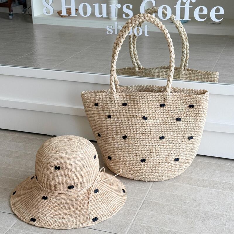 ブラックのミニリボンモチーフがアクセントのラフィアハット。