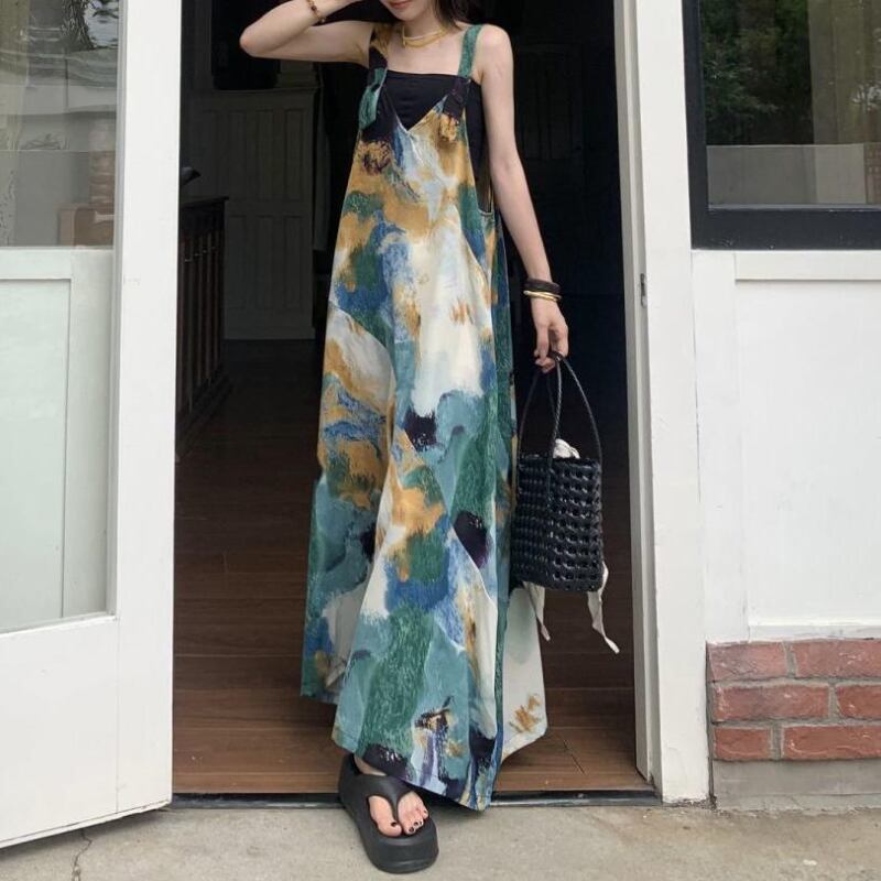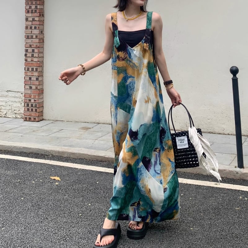 ニュアンス柄が目を惹くワイドサロペット。