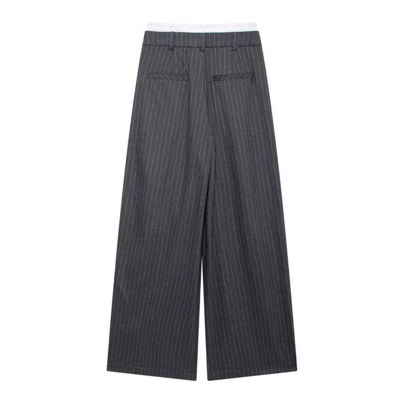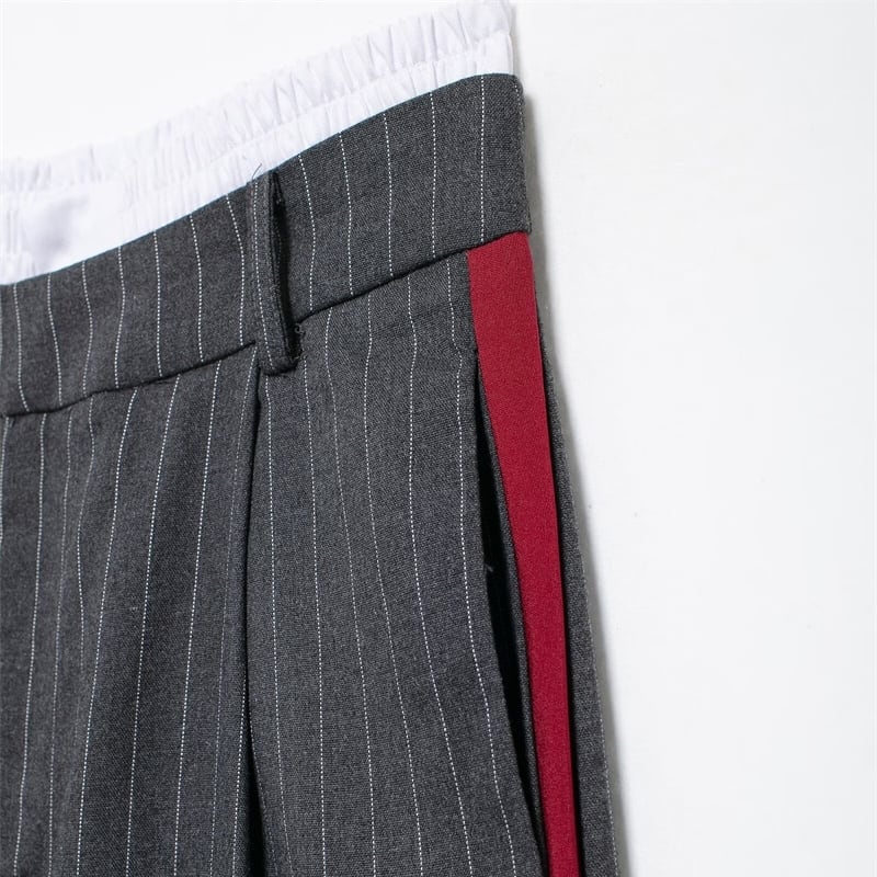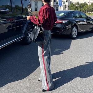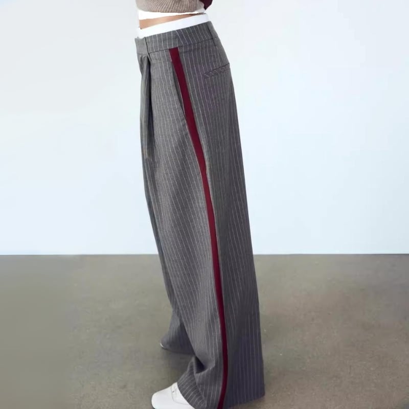 Striped side line wide pants V2479
