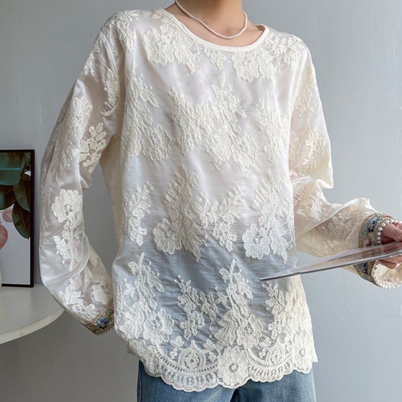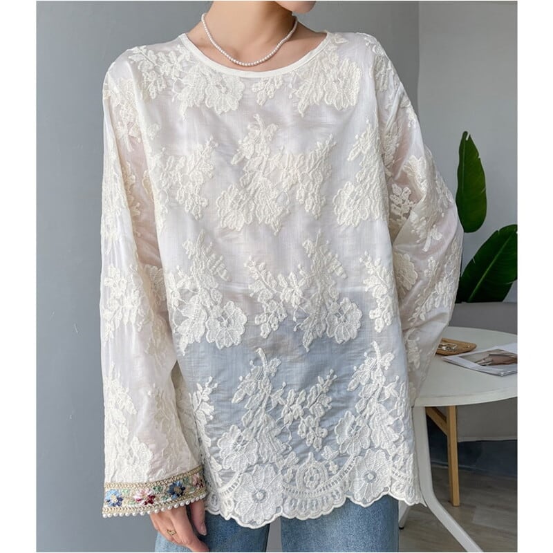 袖口の彩り豊かな刺繍とパールがさりげないアクセントに。