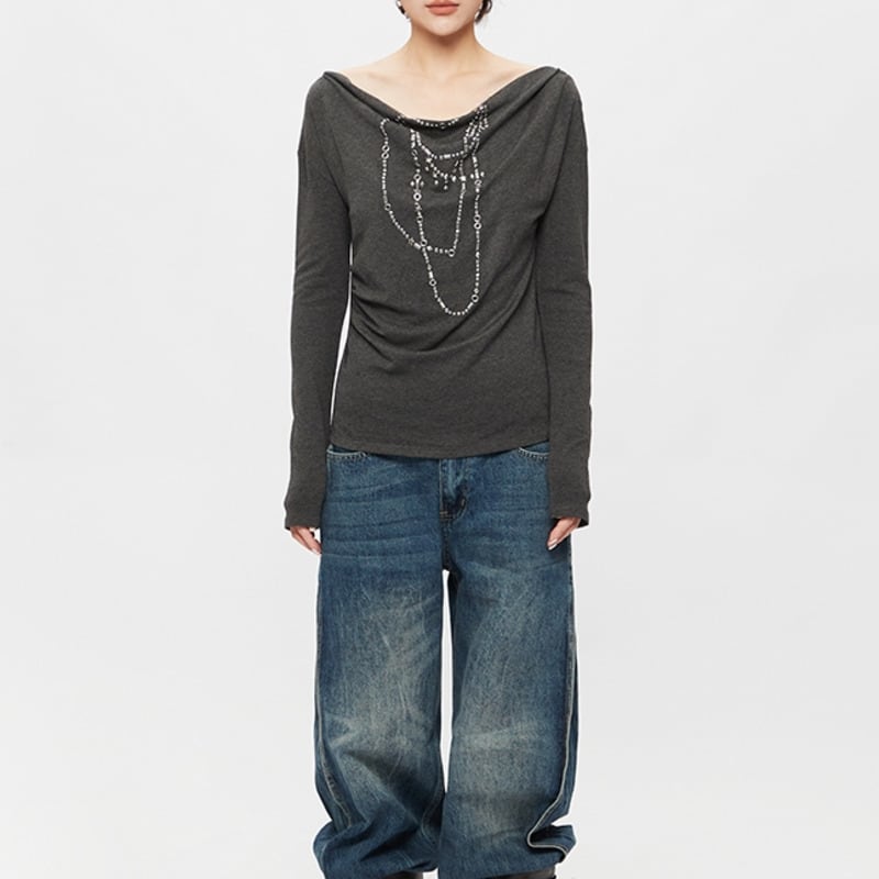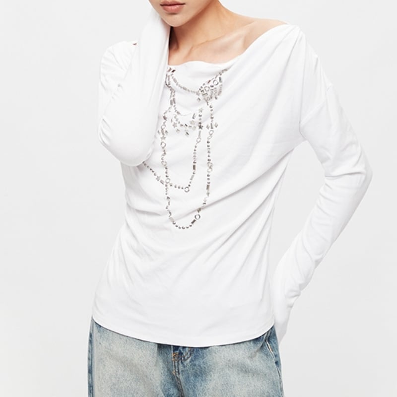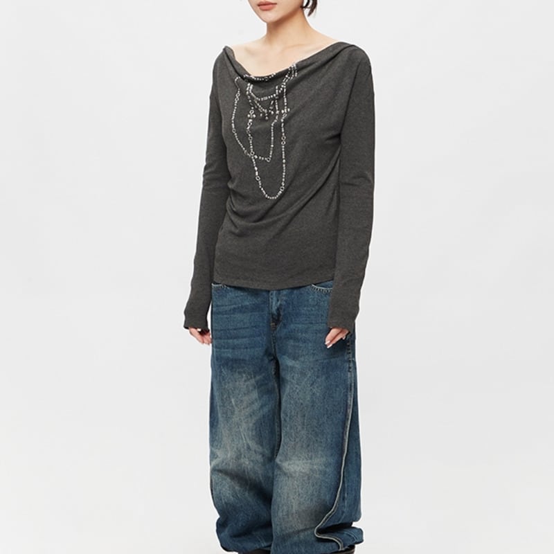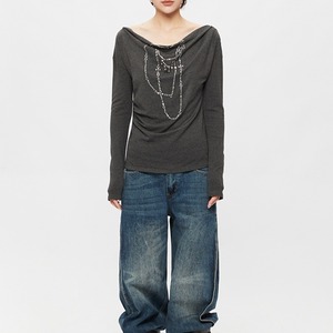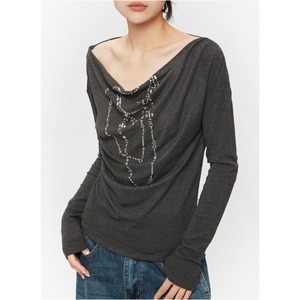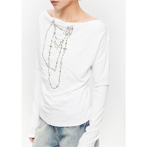 Chain motif offshoulder tops 2 colors V2497
