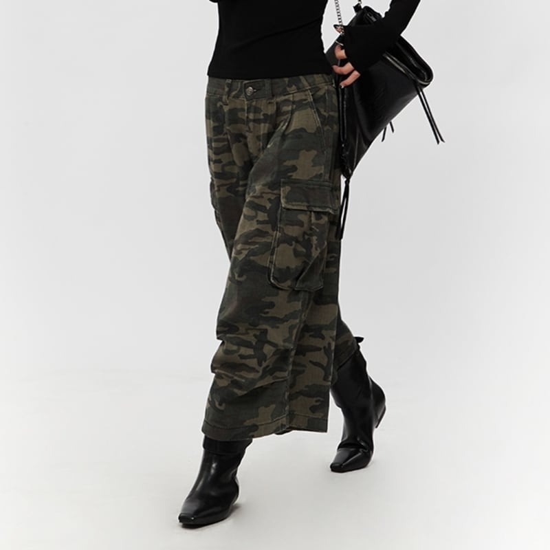 Camouflage wide cargo pants V2498