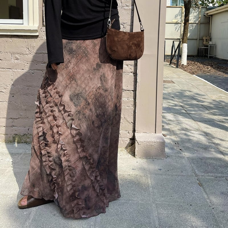 Asymmetrical ruffles A line skirt 2 colors V2499