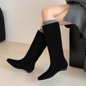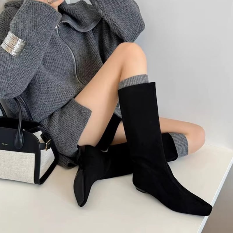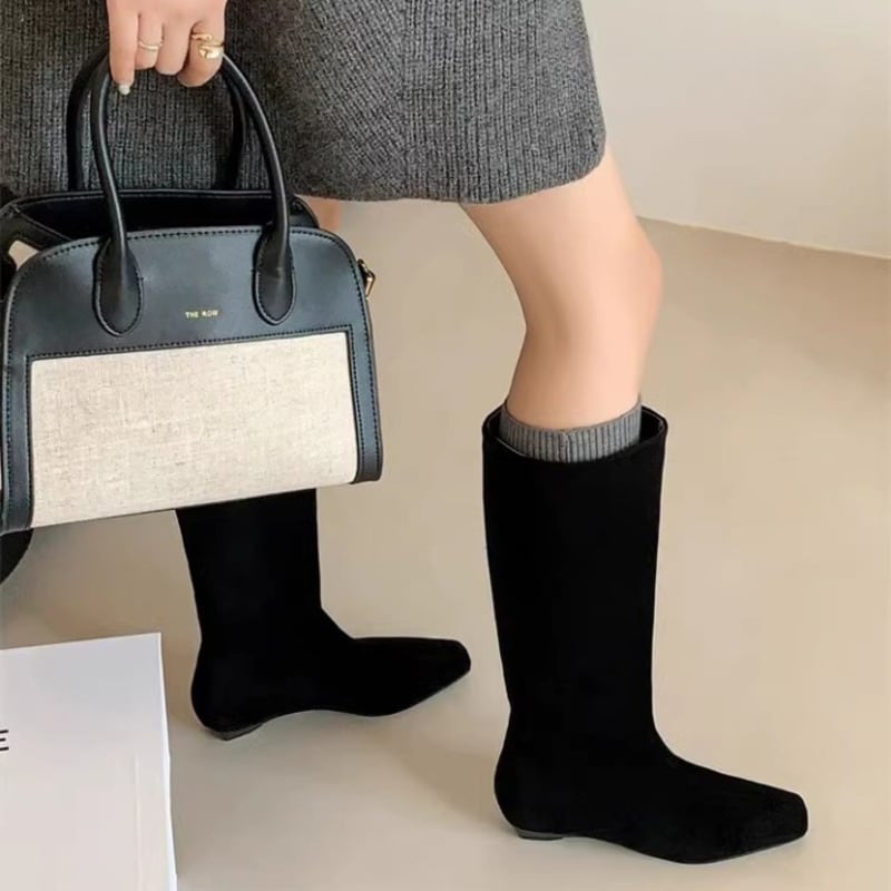 Square toe wedge ⅼong boots 2 types V2505