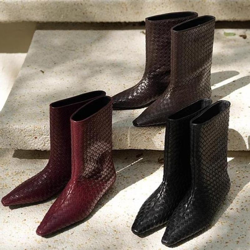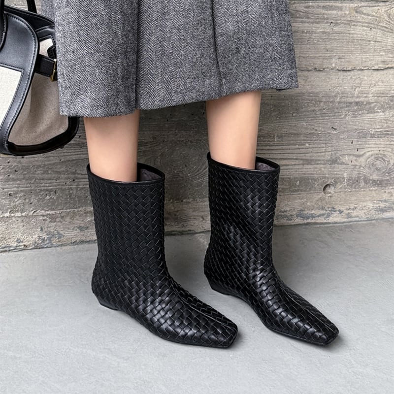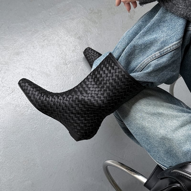 上品な編み込みデザインが洗練されたミドルブーツ。