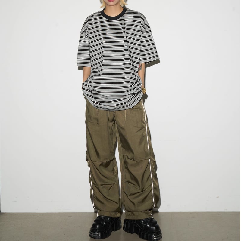 大胆なワイドシルエットで存在感抜群のルーズパンツ。