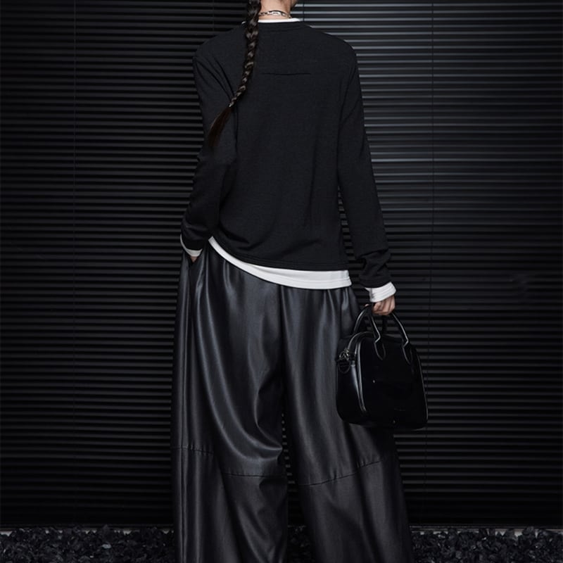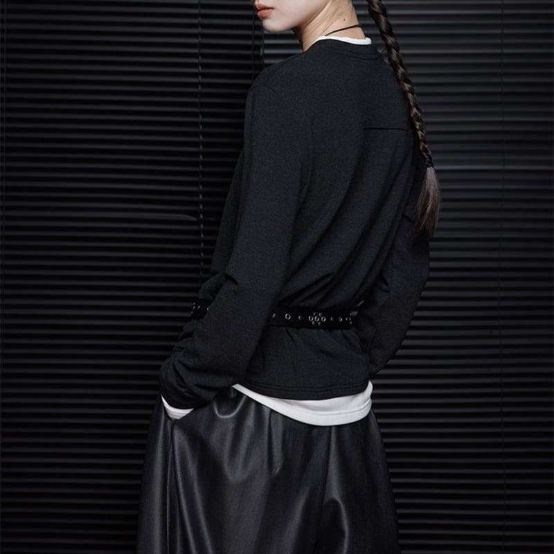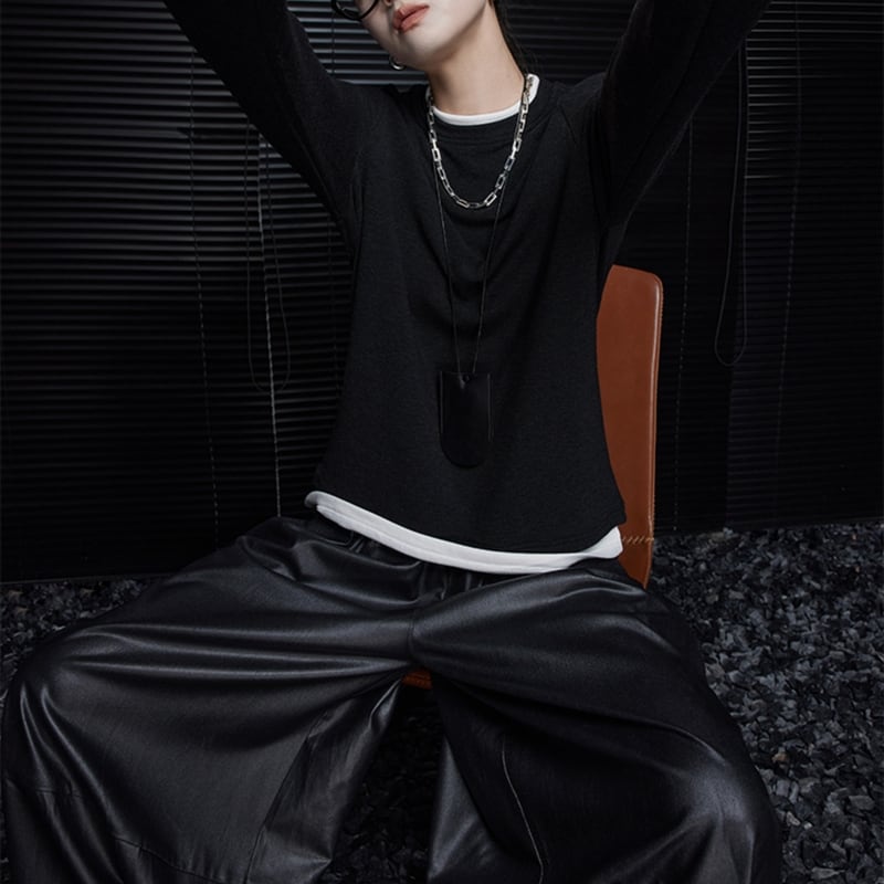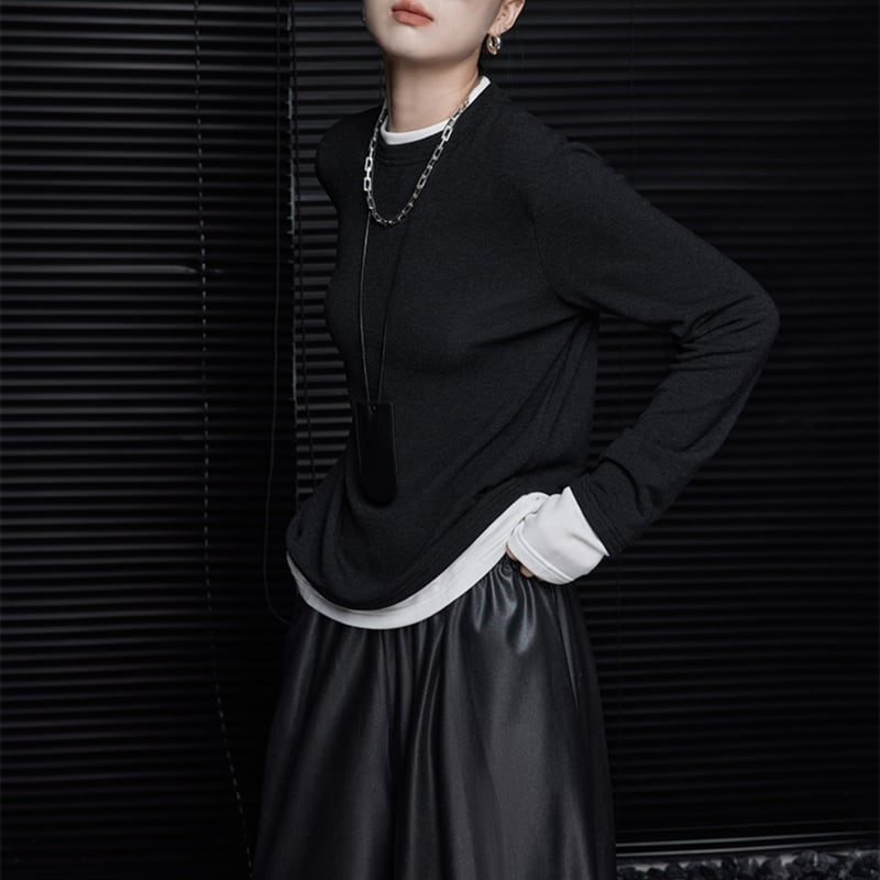レイヤード風デザインが魅力のロングスリーブトップス。