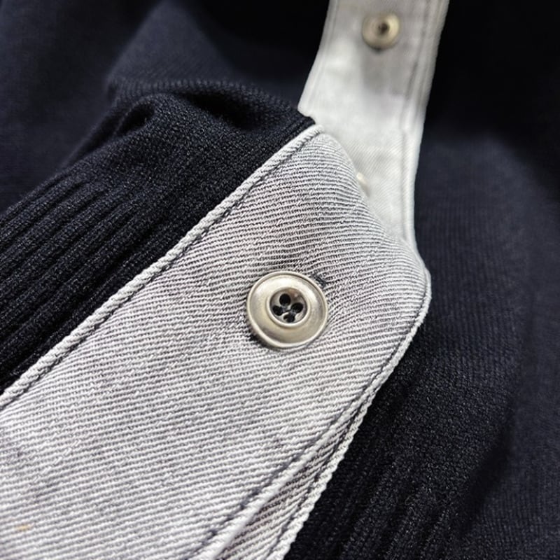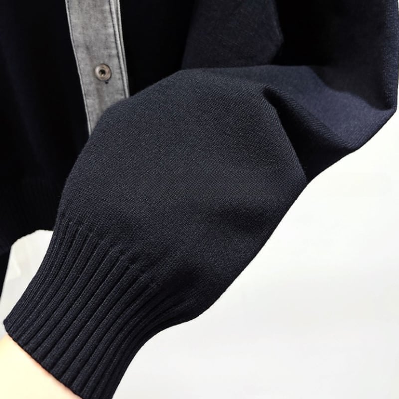 デニムとニットの異素材MIXが目を惹くニットトップス。