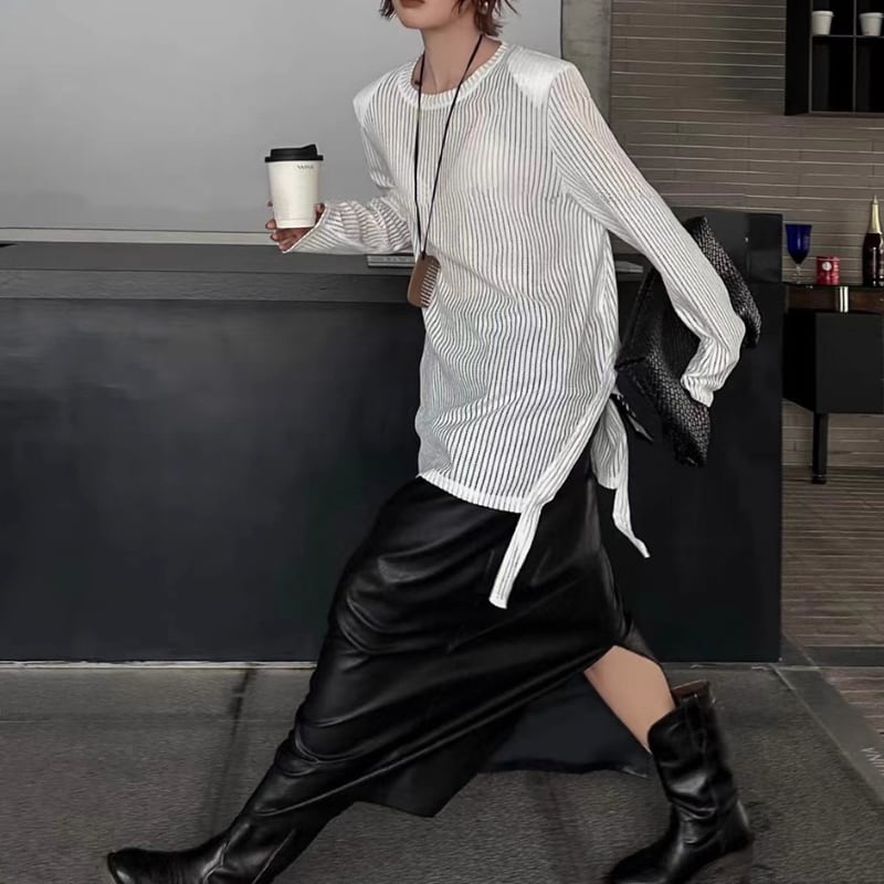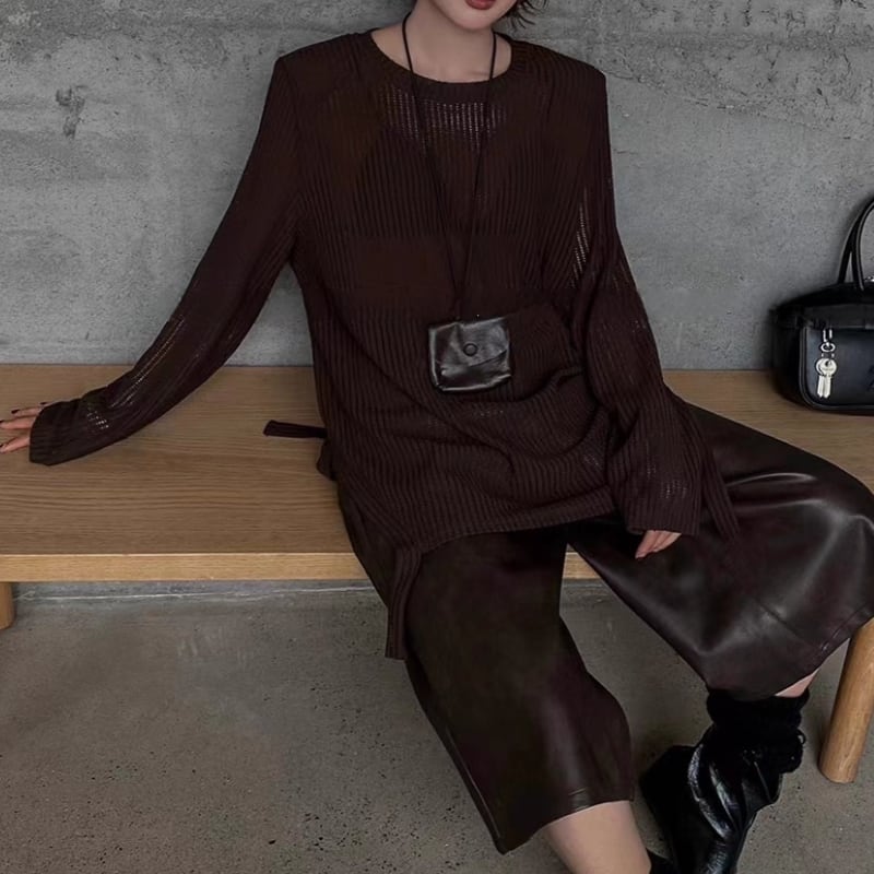 縦ラインのシアーリブ素材が抜け感あるプルオーバー。