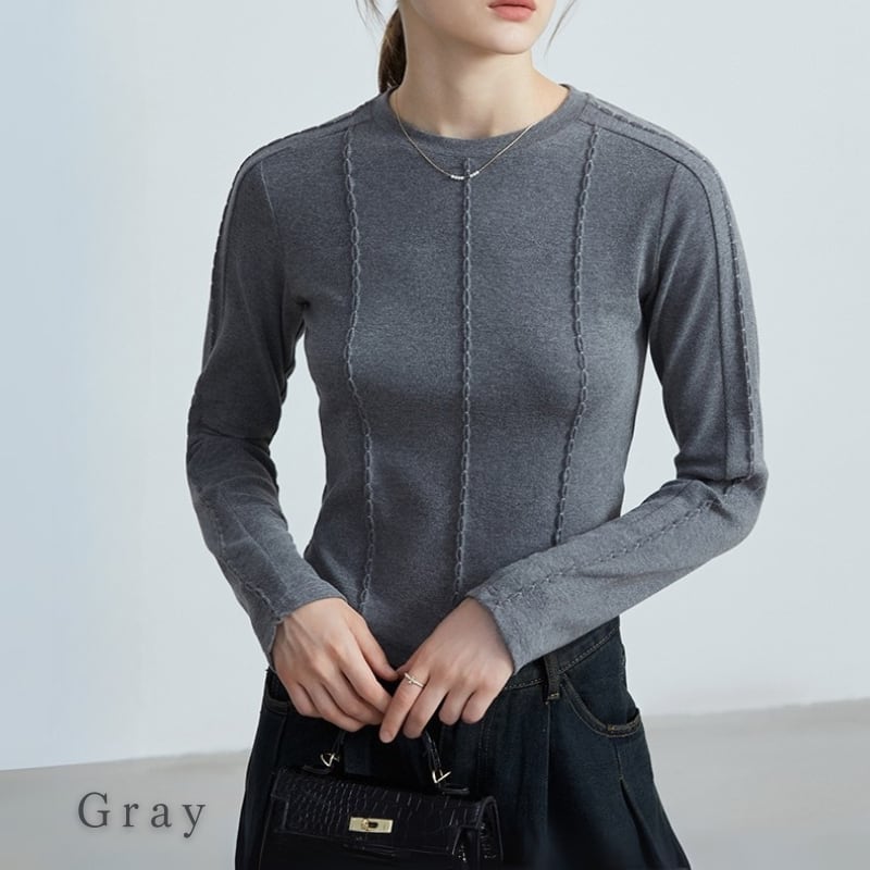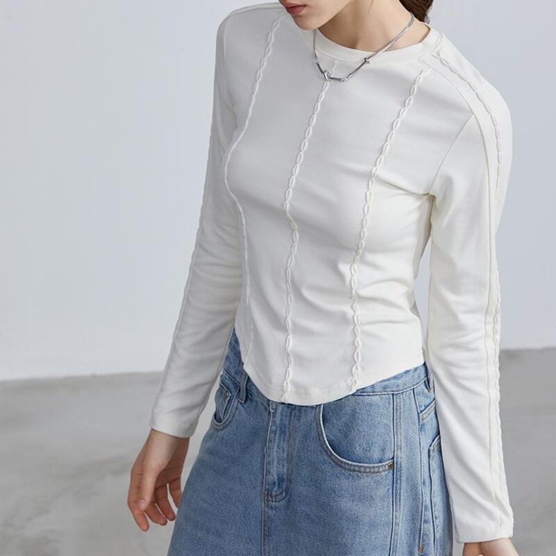 すっきりとしたシルエットが魅力のロングスリーブトップス。