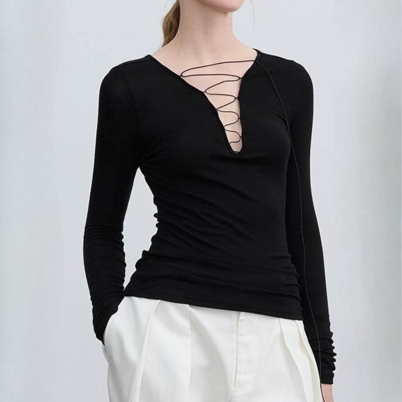 Lace up V neck tops V2536