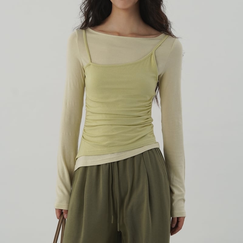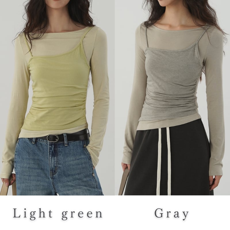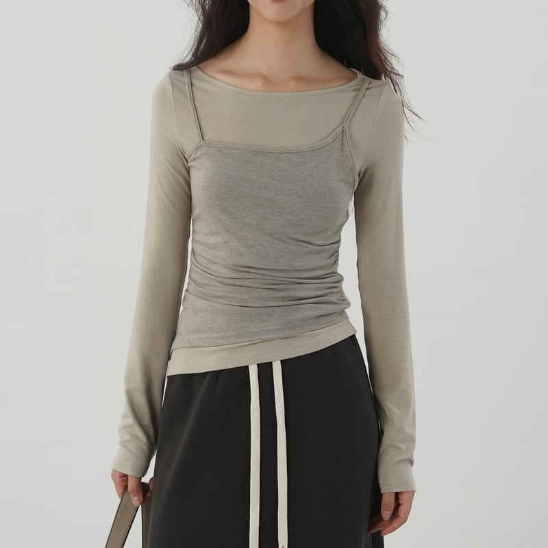 ビスチェをつけているようなレイヤード風トップス。