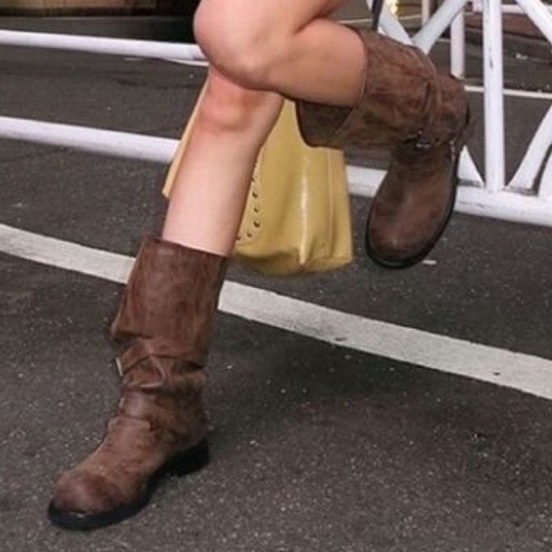 ヴィンテージライクな色合いが魅力のミディアム丈ブーツ。