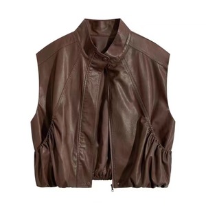 Gathered pocket standcollar vest 2 colors V2558