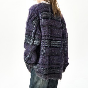 Mohair border knit cardigan 2 colors V2598
