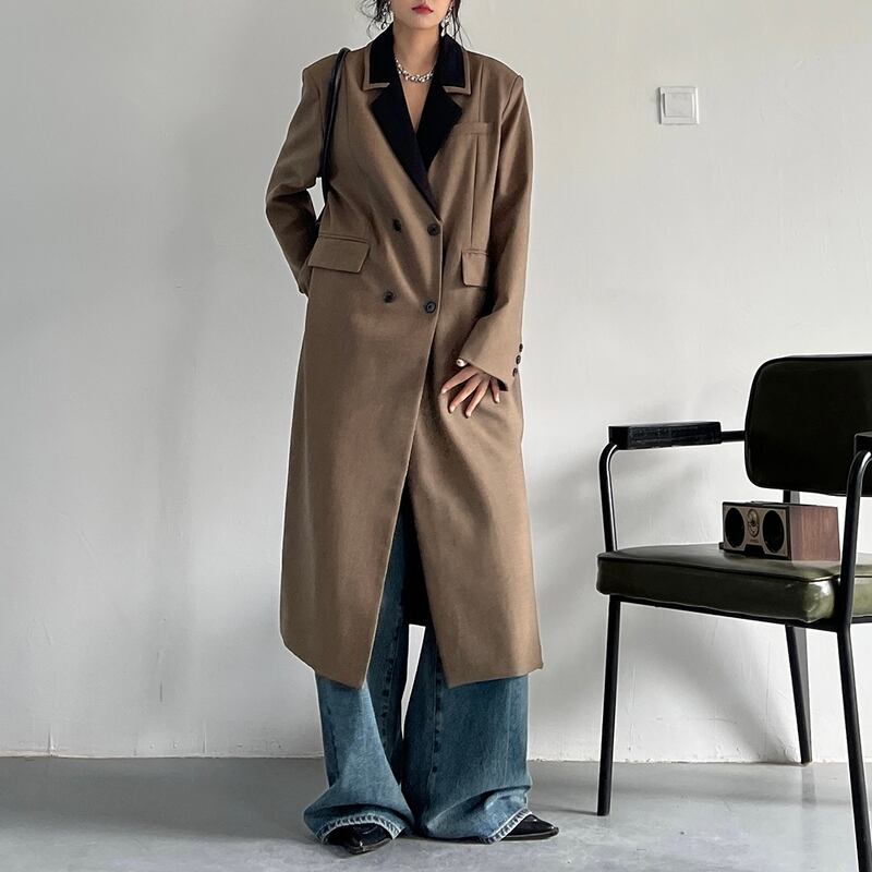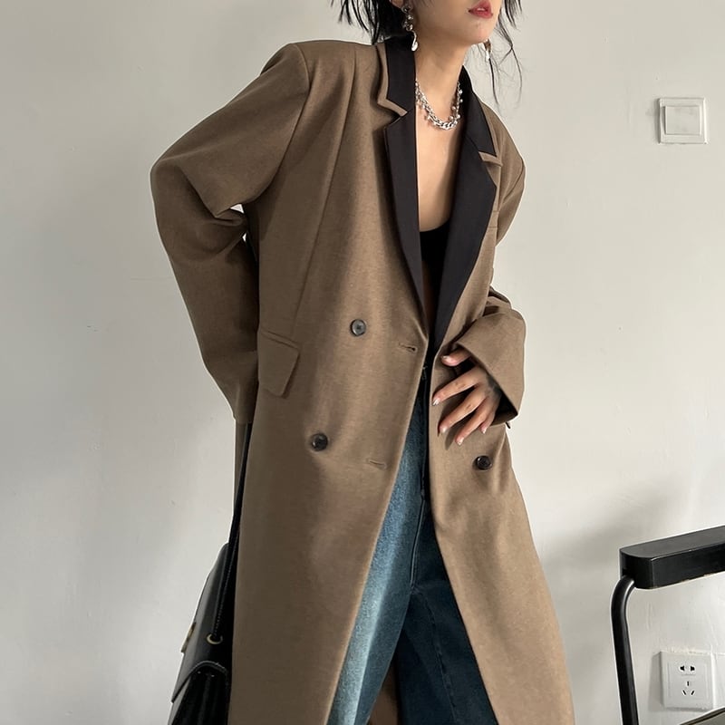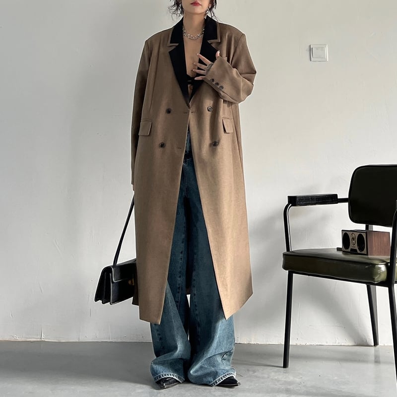 ダブルブレストのハンサムな仕立てが魅力的です。