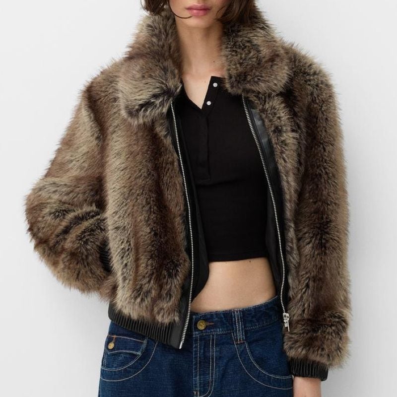 Fake fur zip blouson V2610