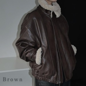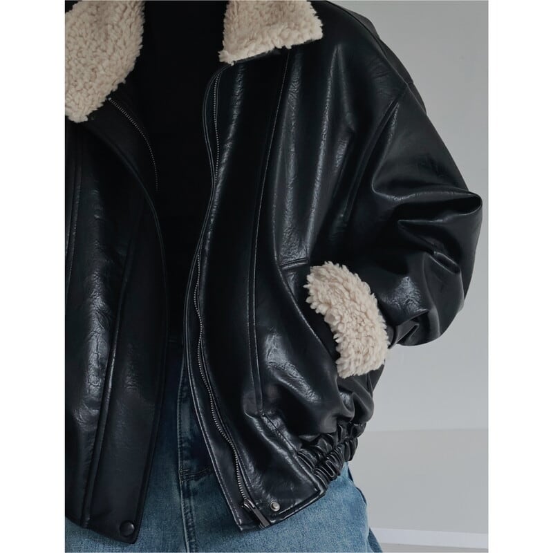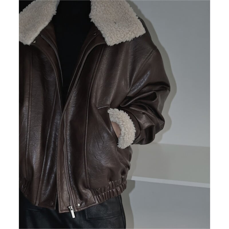 ボアをアクセントにしたオーバーサイズのフェイクレザージャケット。