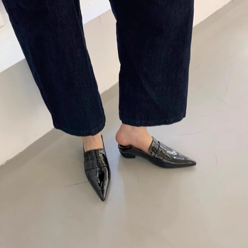 すっきりとしたトゥが足元にシャープな印象をプラス。