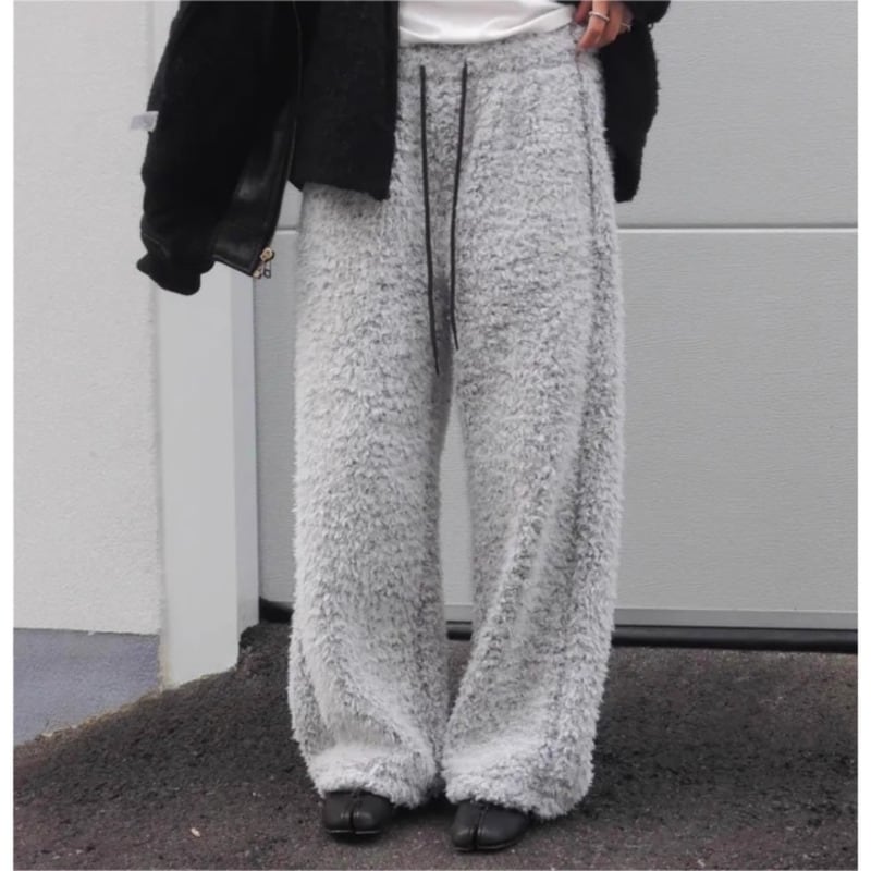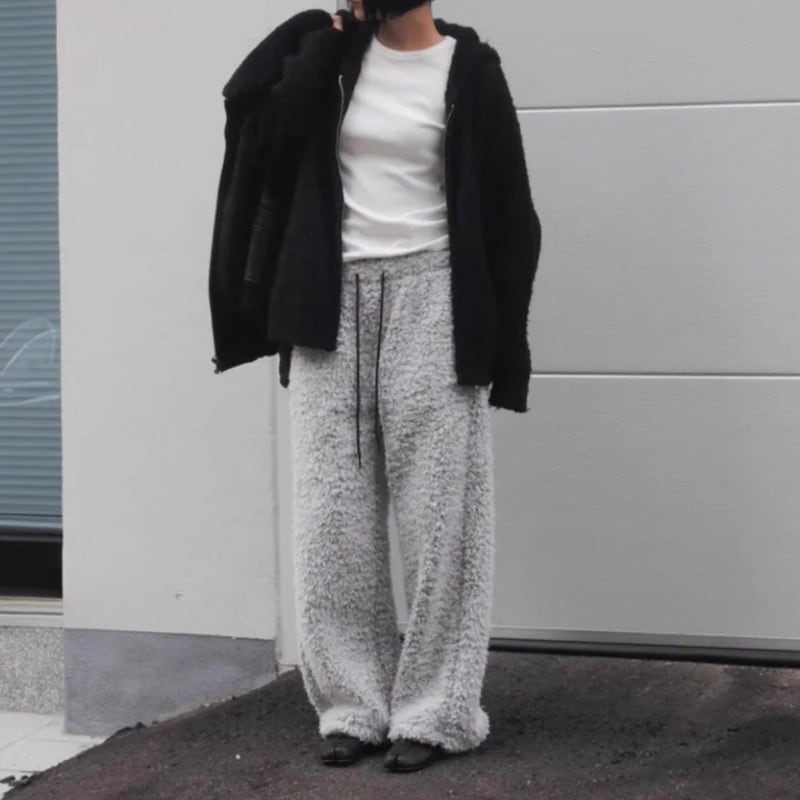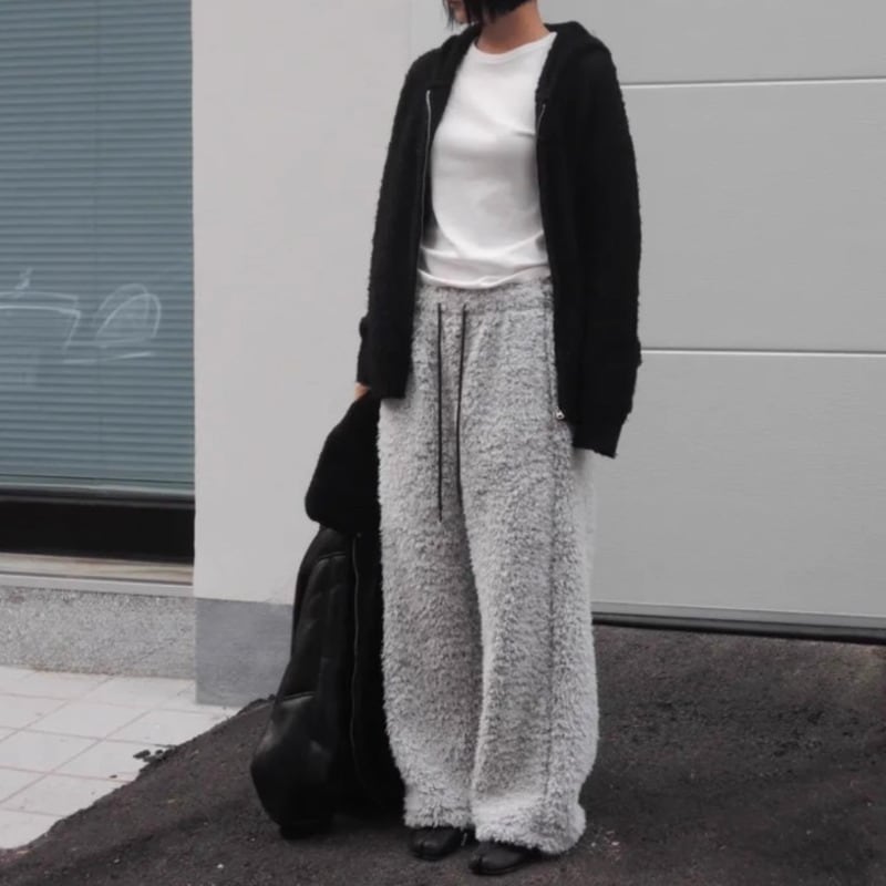 リラックス感漂うドローストリング付きのワイドパンツ。