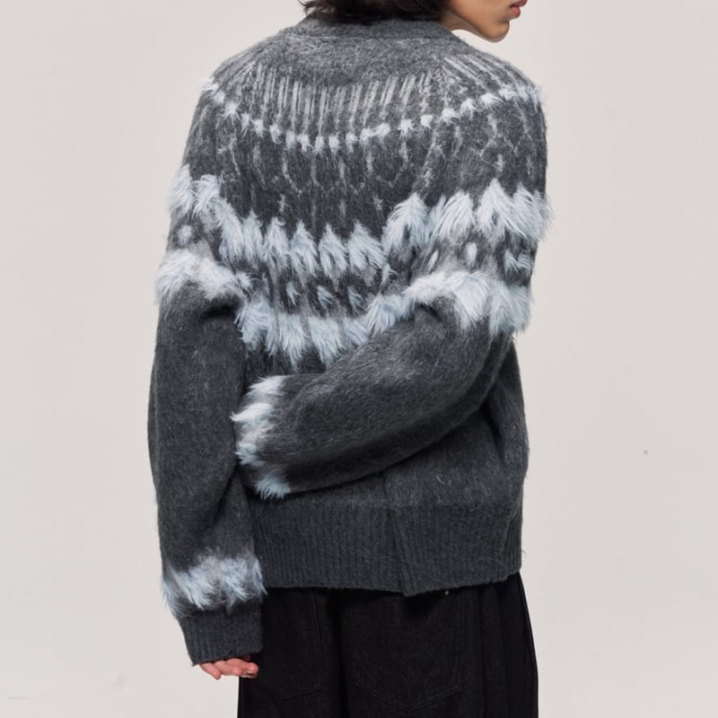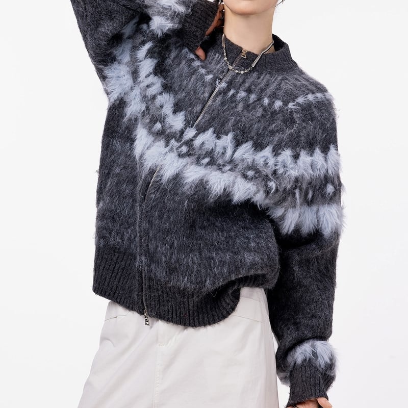 ふんわりとした起毛感あるパターンがこなれた一着。