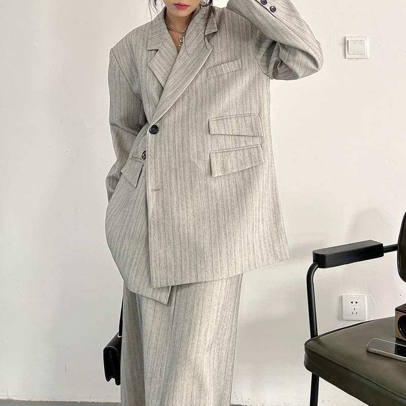 ストライプ柄が印象的なシングルブレストの