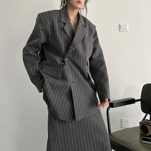 Striped asymmetry jacket skirt 2 colors V2635