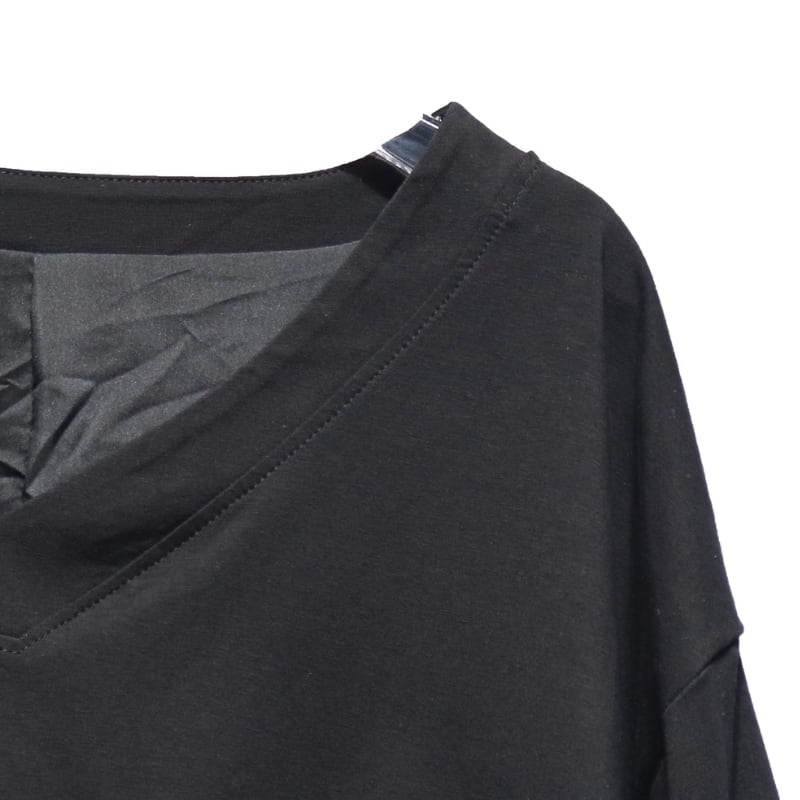 深めのVネックがデコルテを美しく見せてくれる