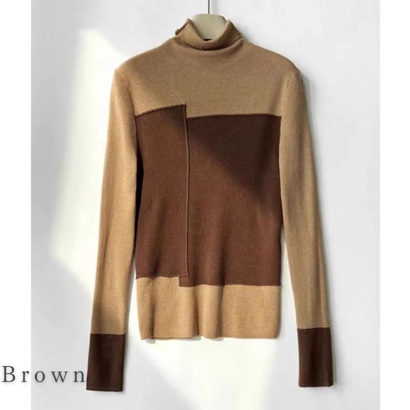 Bicolor high neck knit tops 3 colors V2661