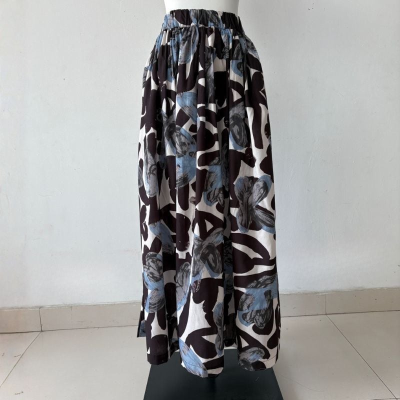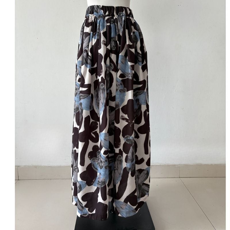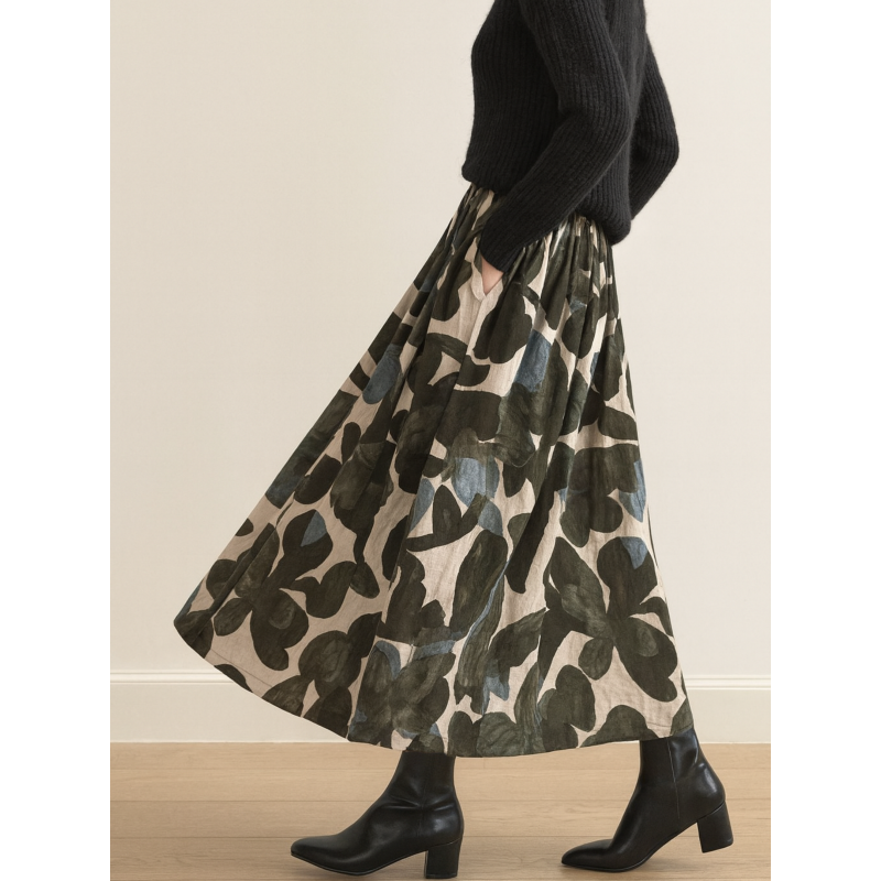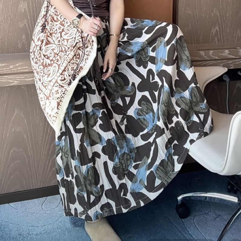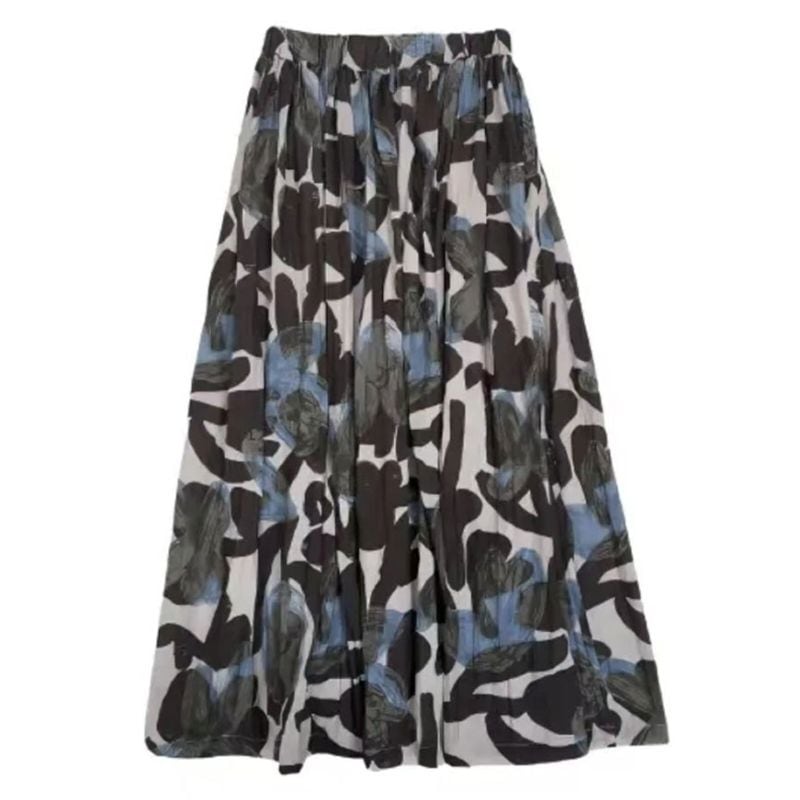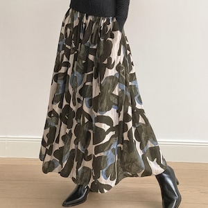やわらかく優しい動きのでる印象的なドット柄ロングスカート。