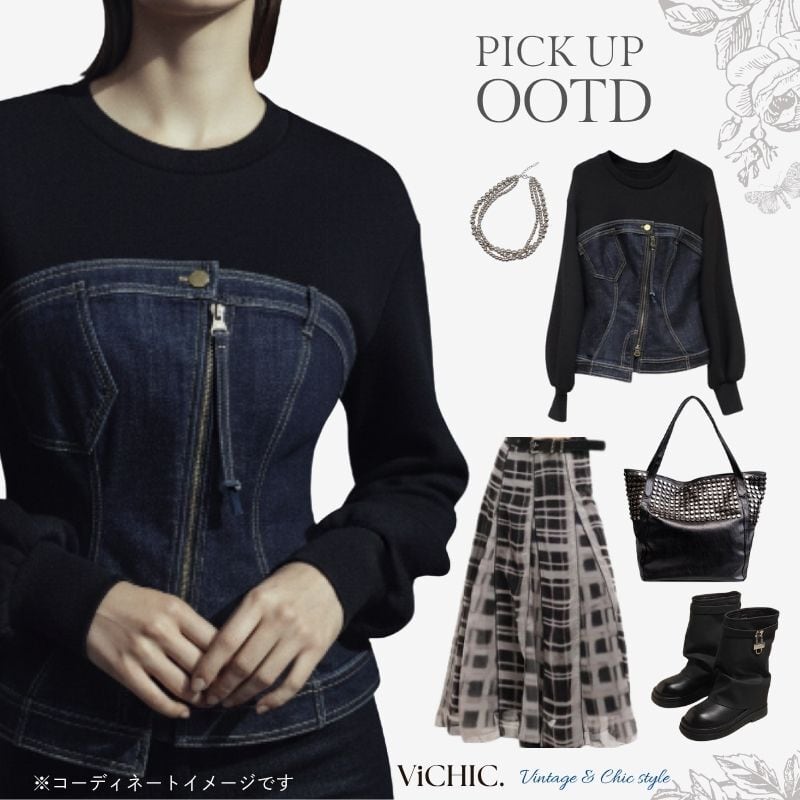 ▼「Denim combi front zipper tops V1423」のコーデBlogはこちら