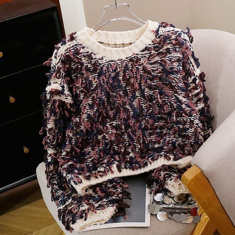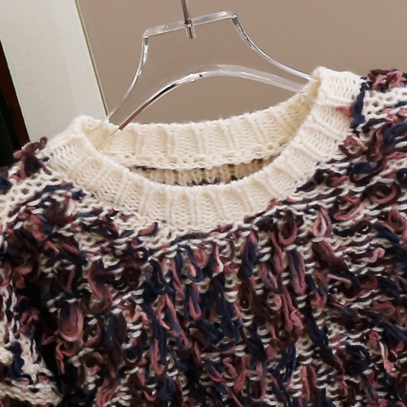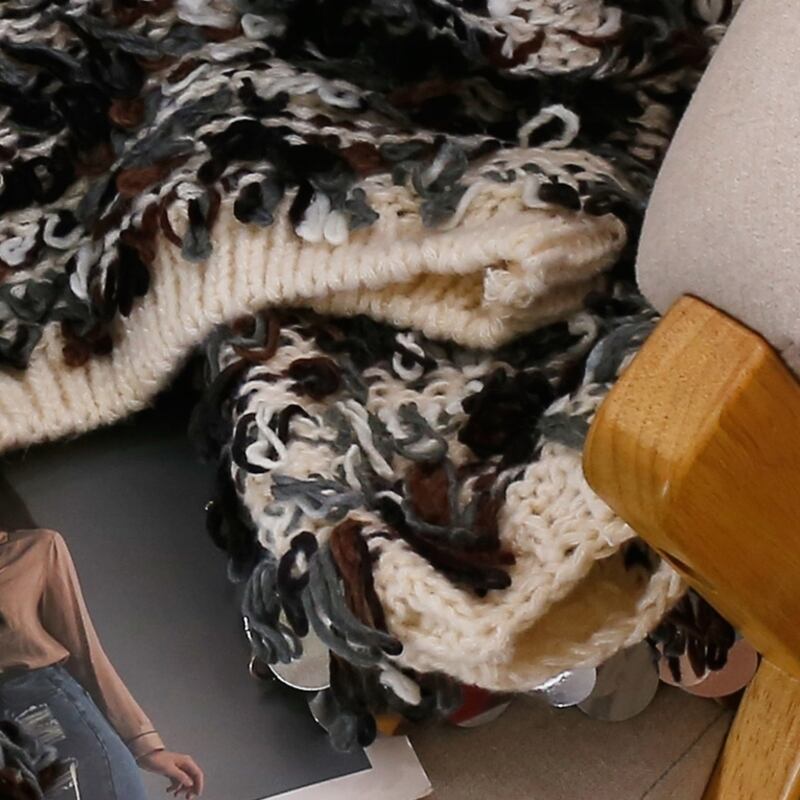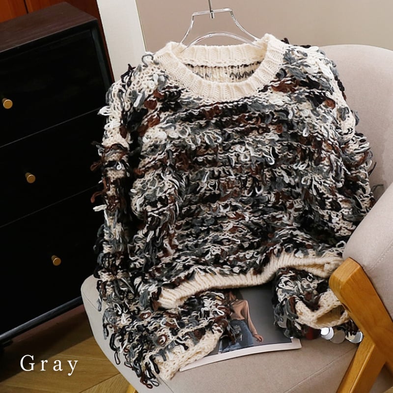 ランダムな配色のフリンジがこなれた雰囲気で、