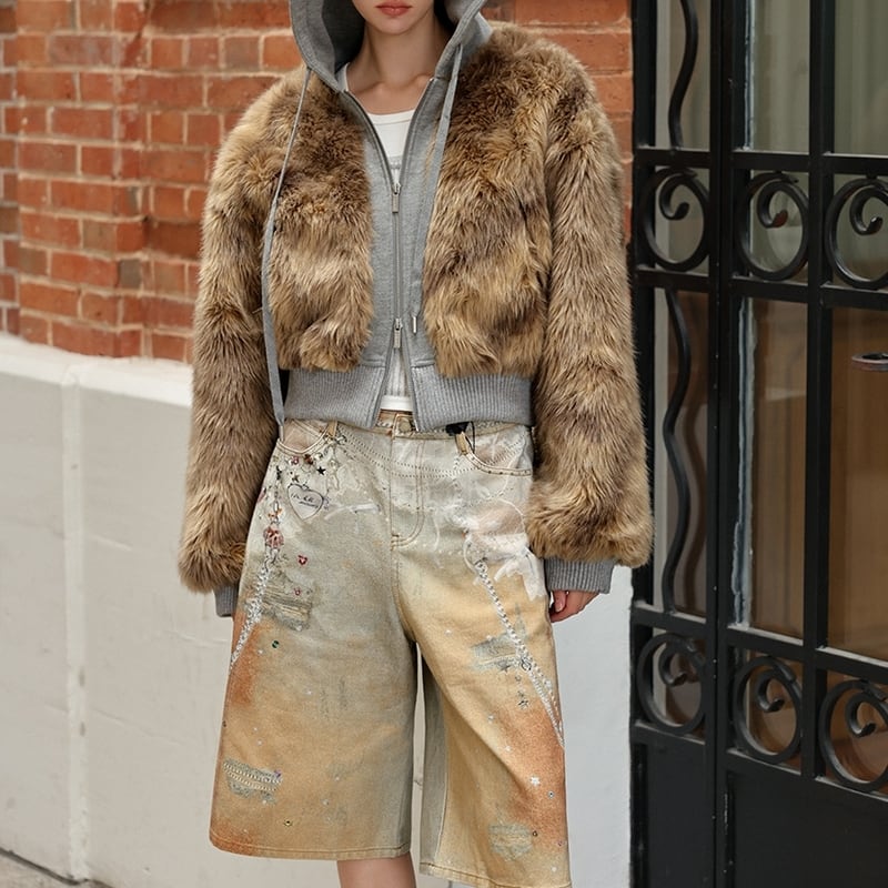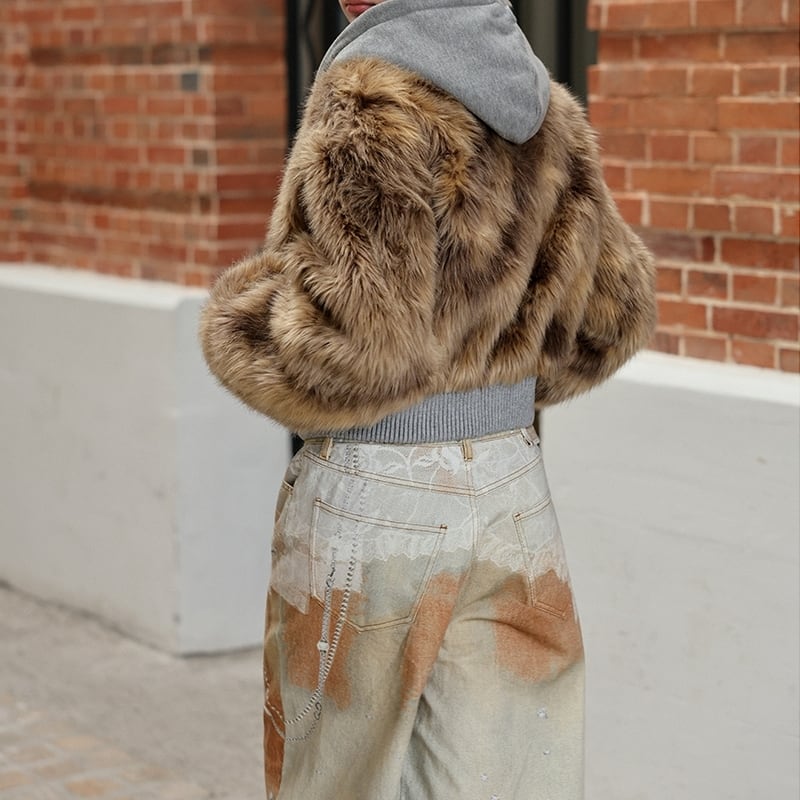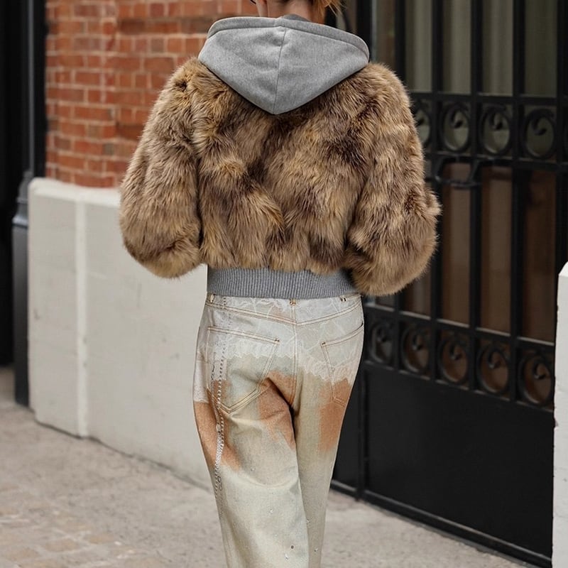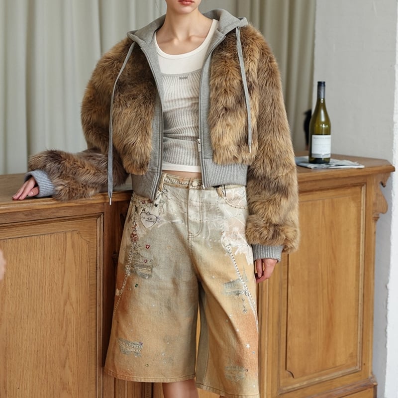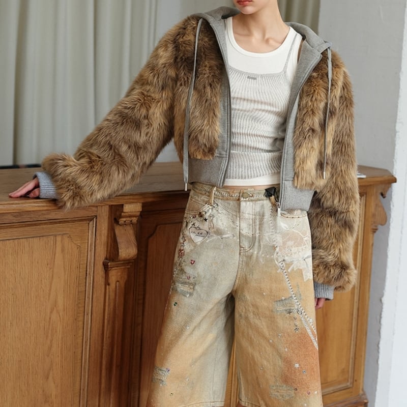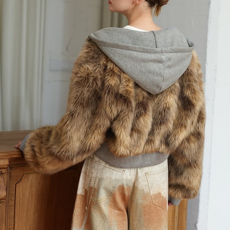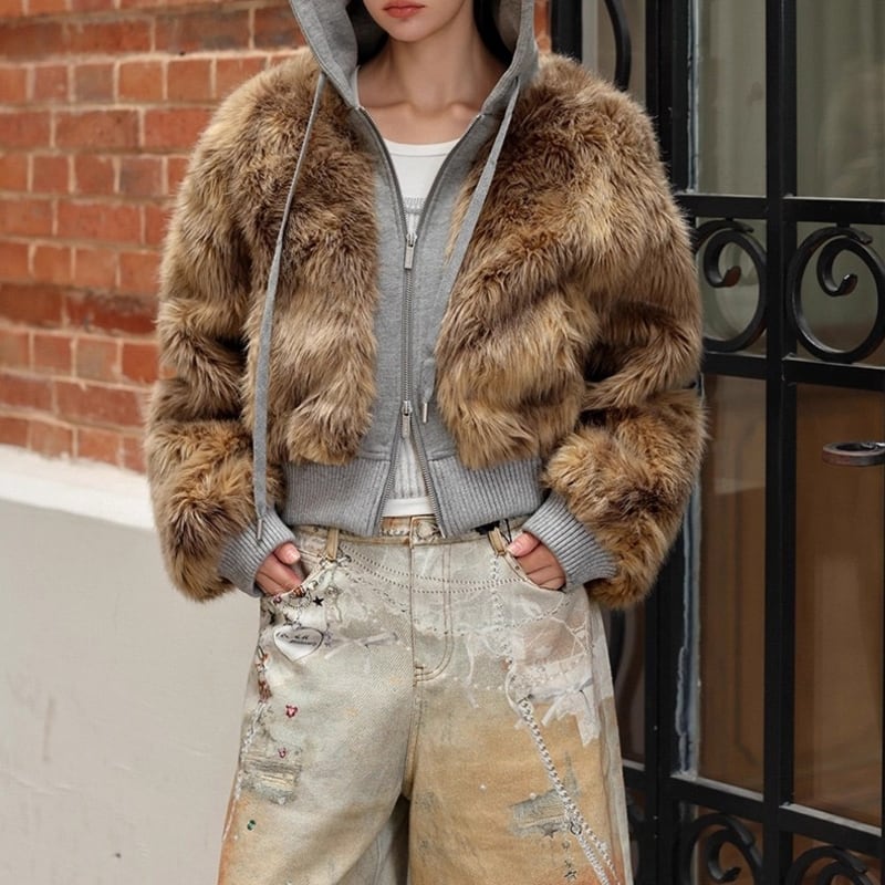 Fake fur docking ziphoodie V2698
