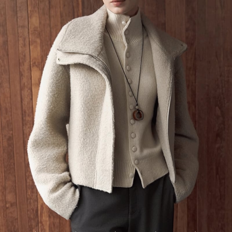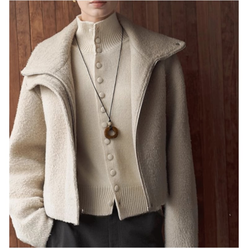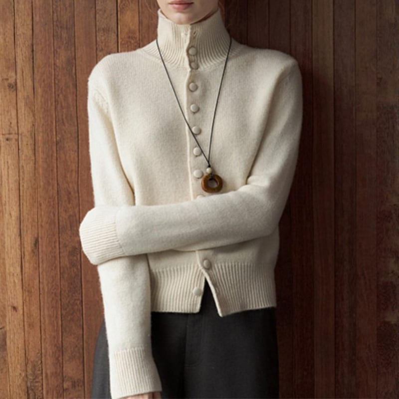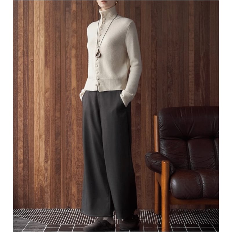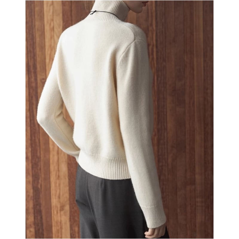 ハイネックデザインが上品さをプラスし、