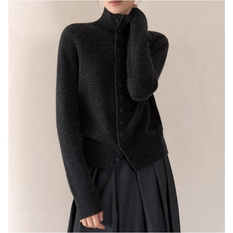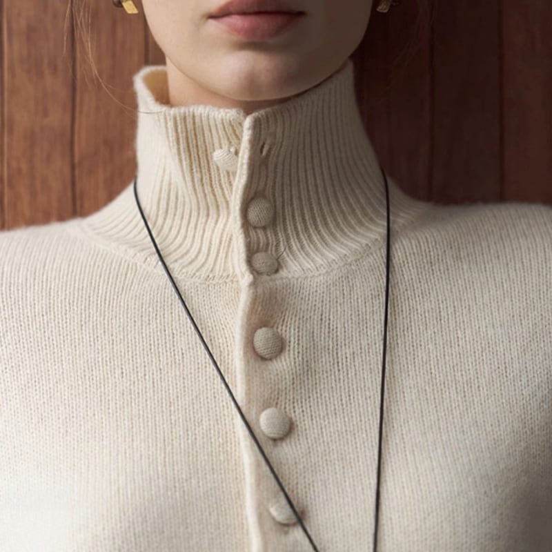 Covered button high neck knit 4 colors V2699