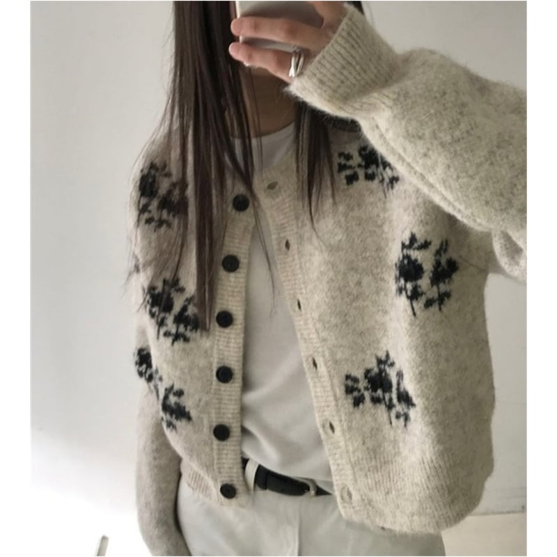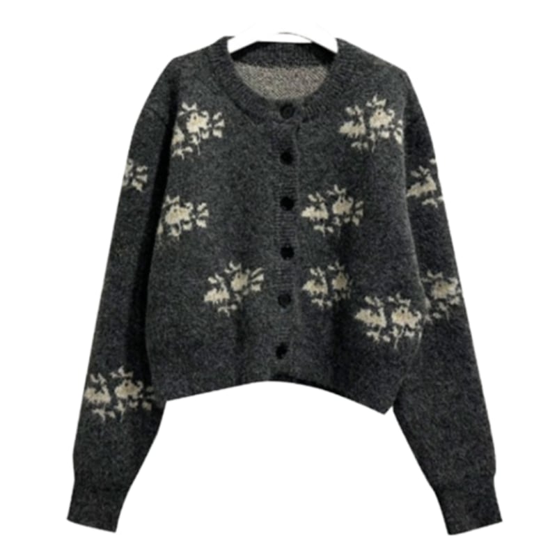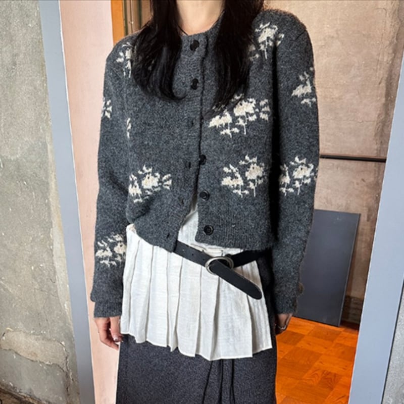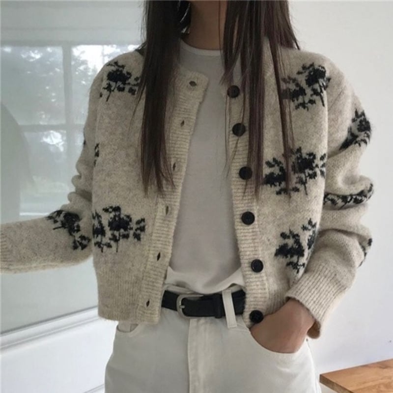 Botanical pattern knit cardigan 2 colors V2726