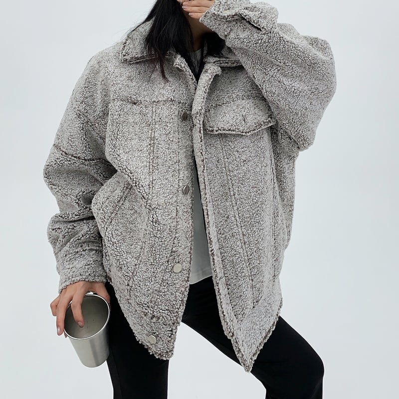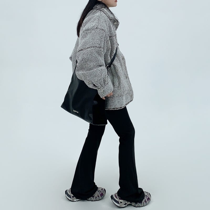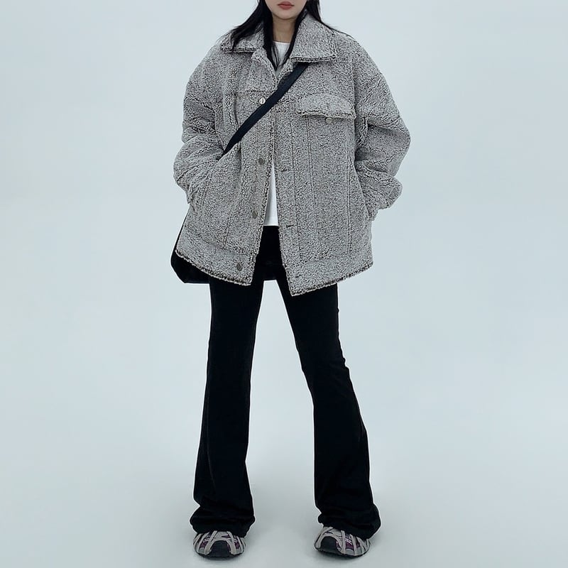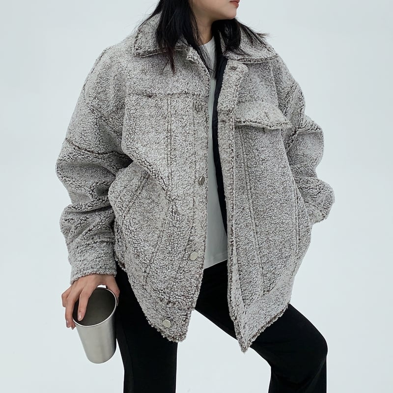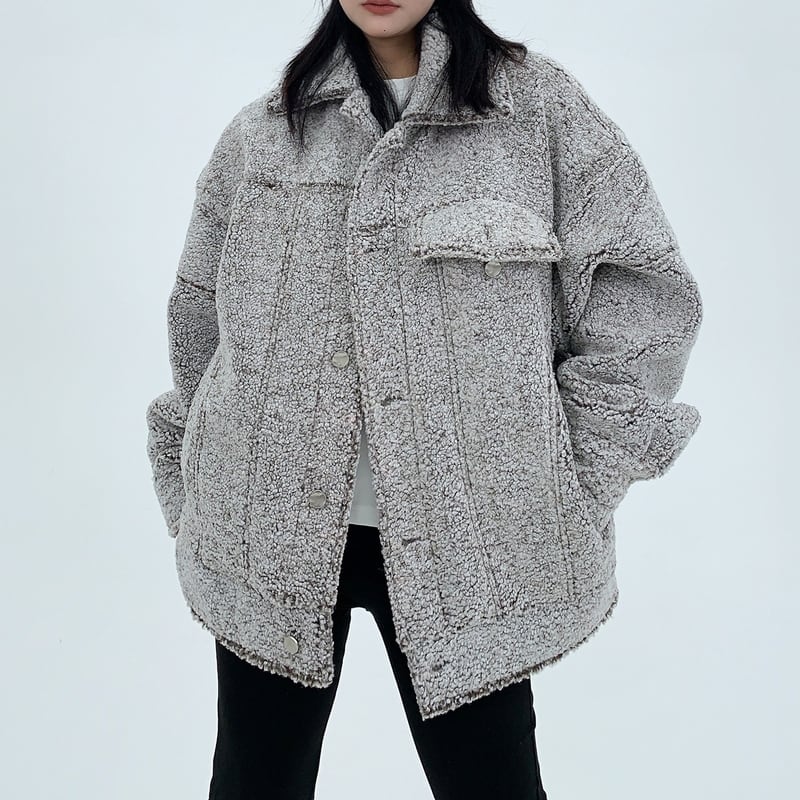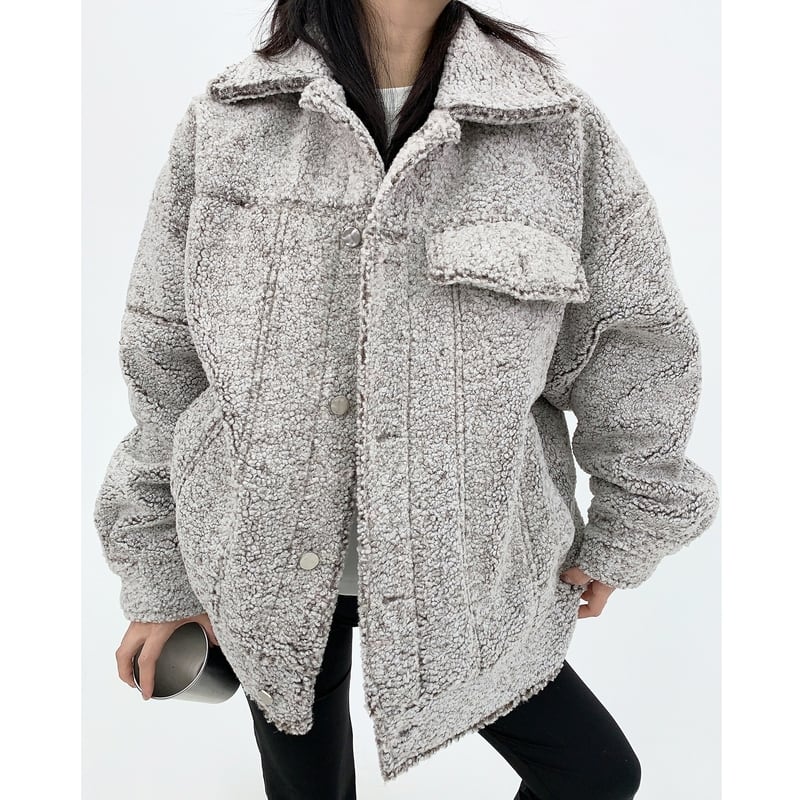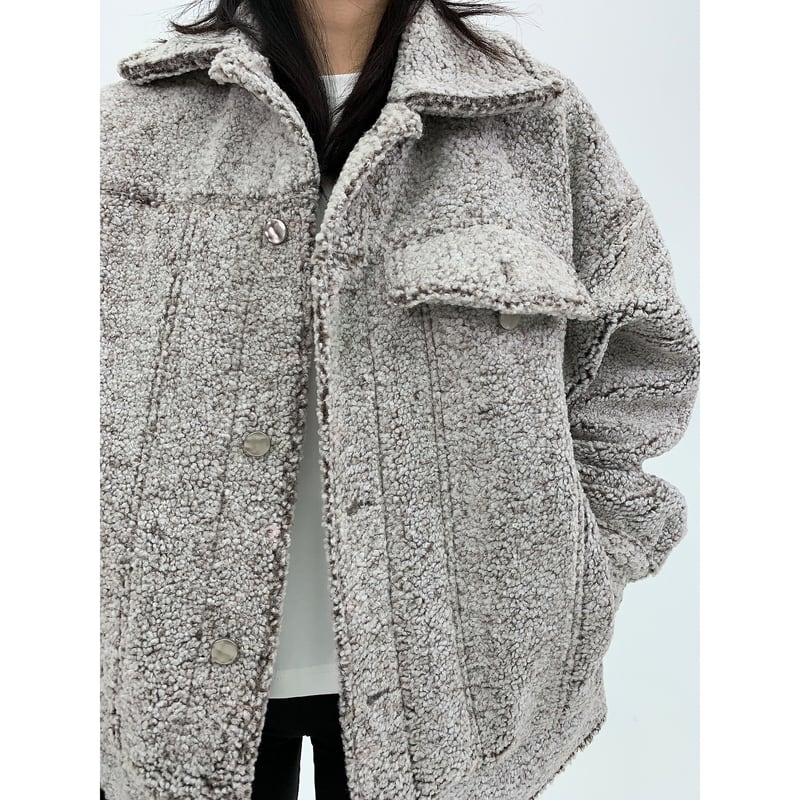 フラップがアクセントになったボアジャケット。