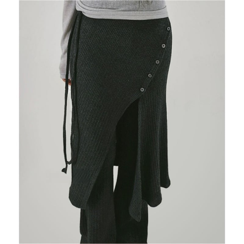アシンメトリーなラップスカートが目を引く