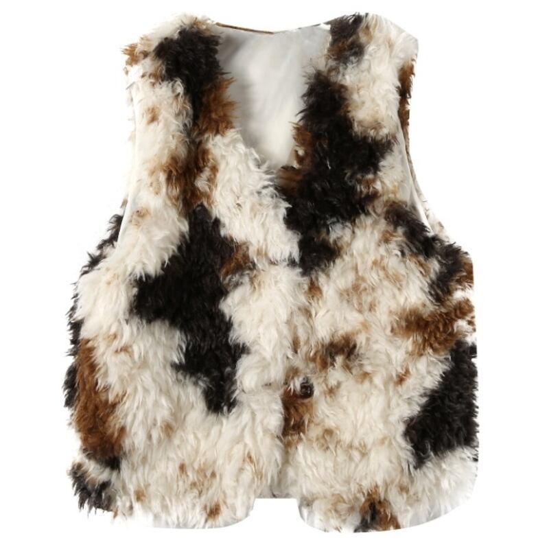 Nuance pattern fake fur vest 2 colors V2744
