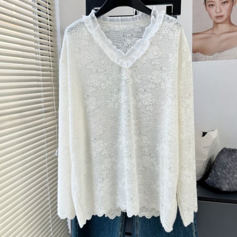 繊細なレースが上品なオーバーサイズプルオーバー。