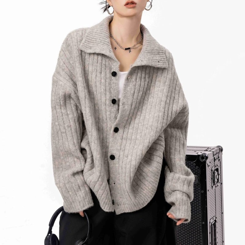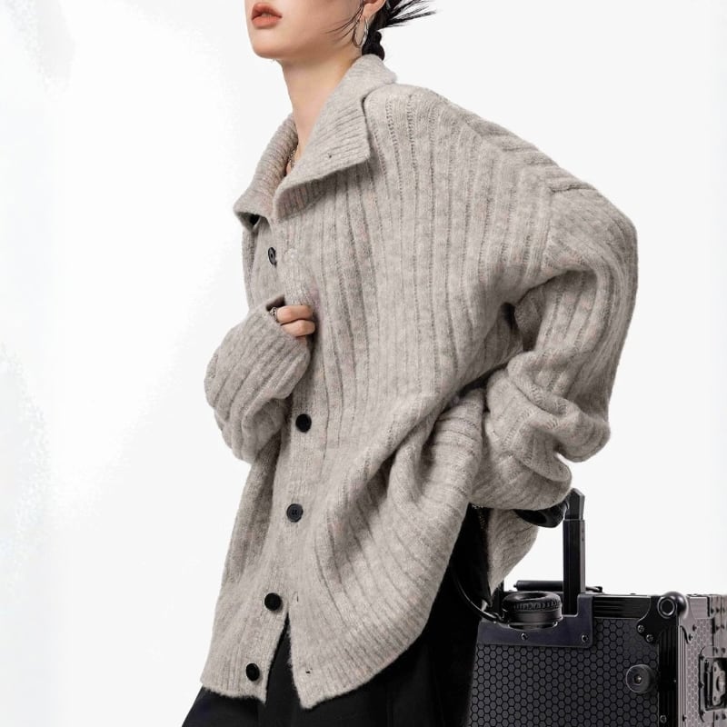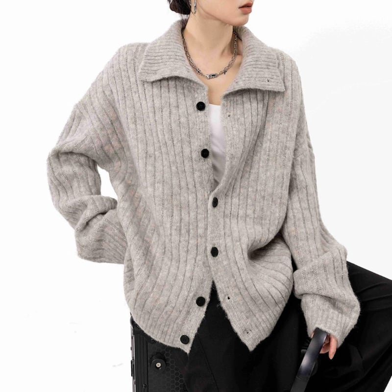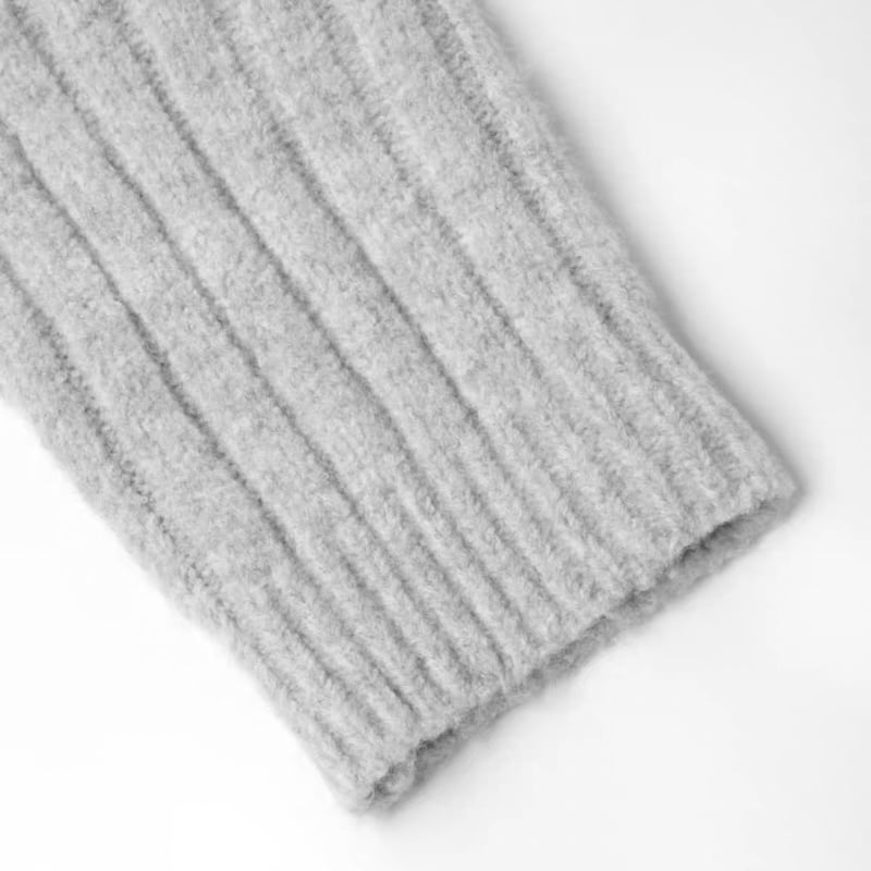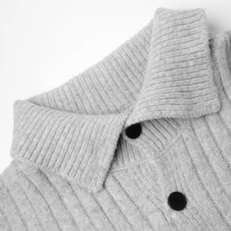 立体感のあるリブデザインと大きめの襟が、