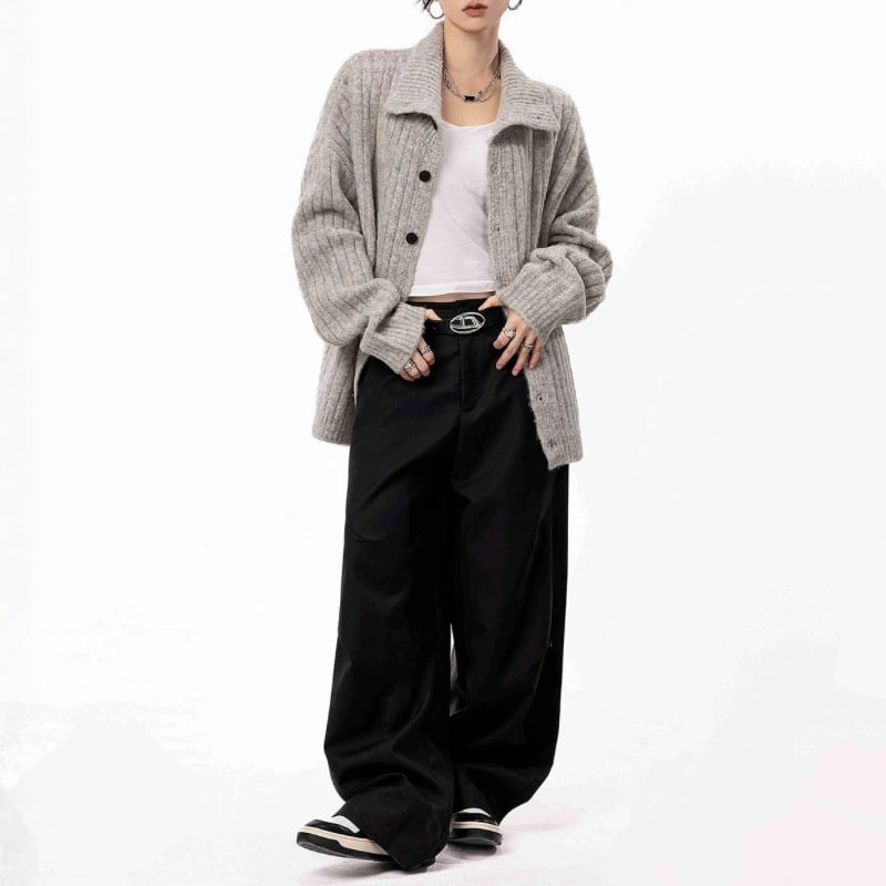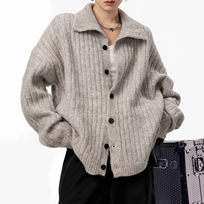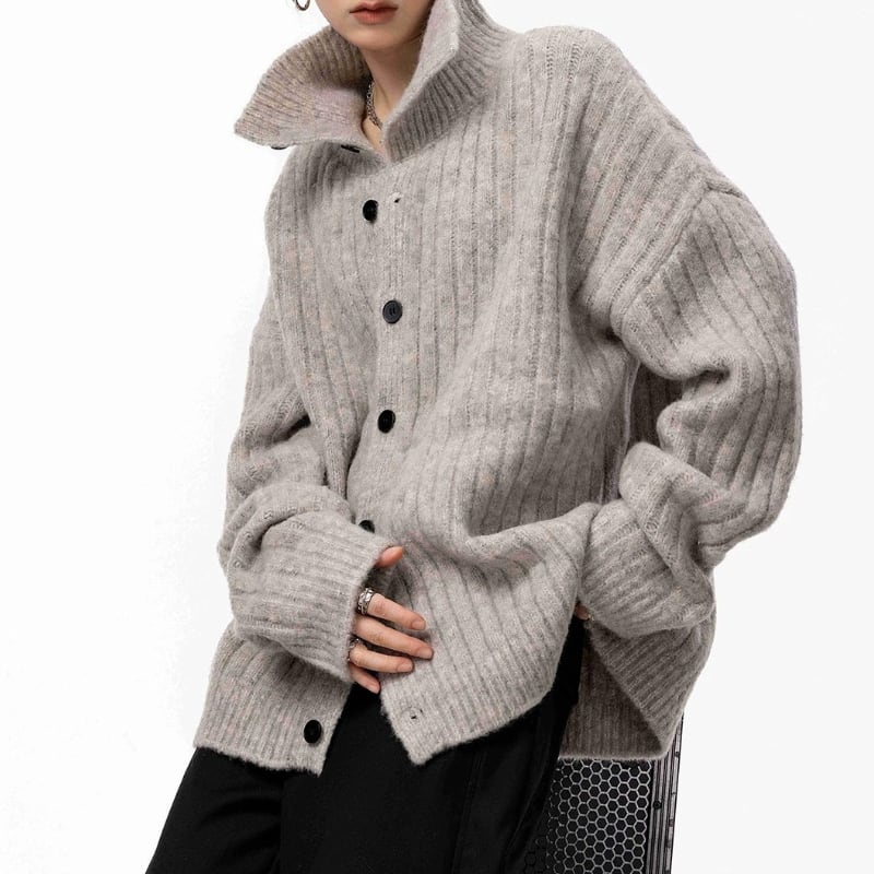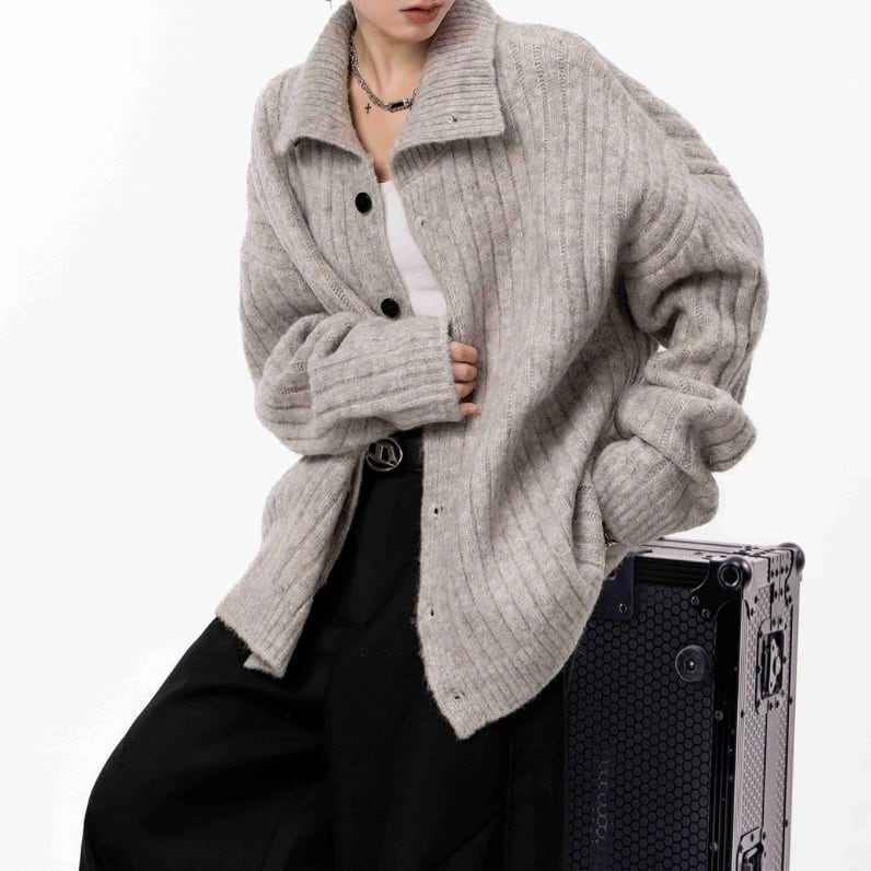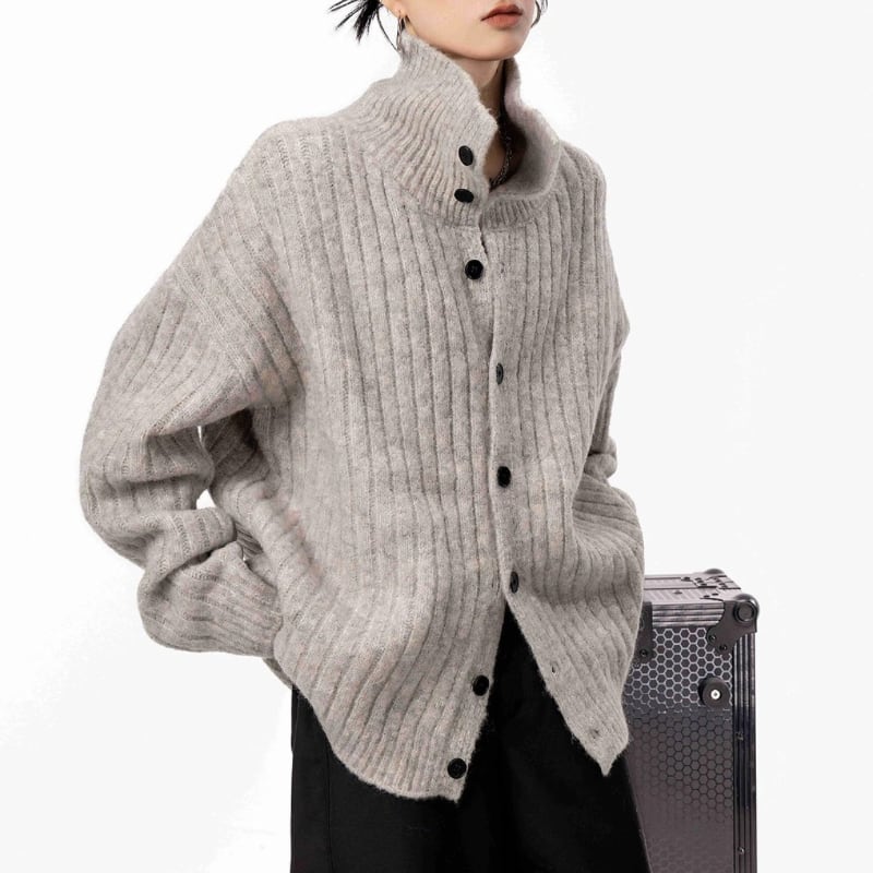 立体感のあるリブデザインと大きめの襟が、